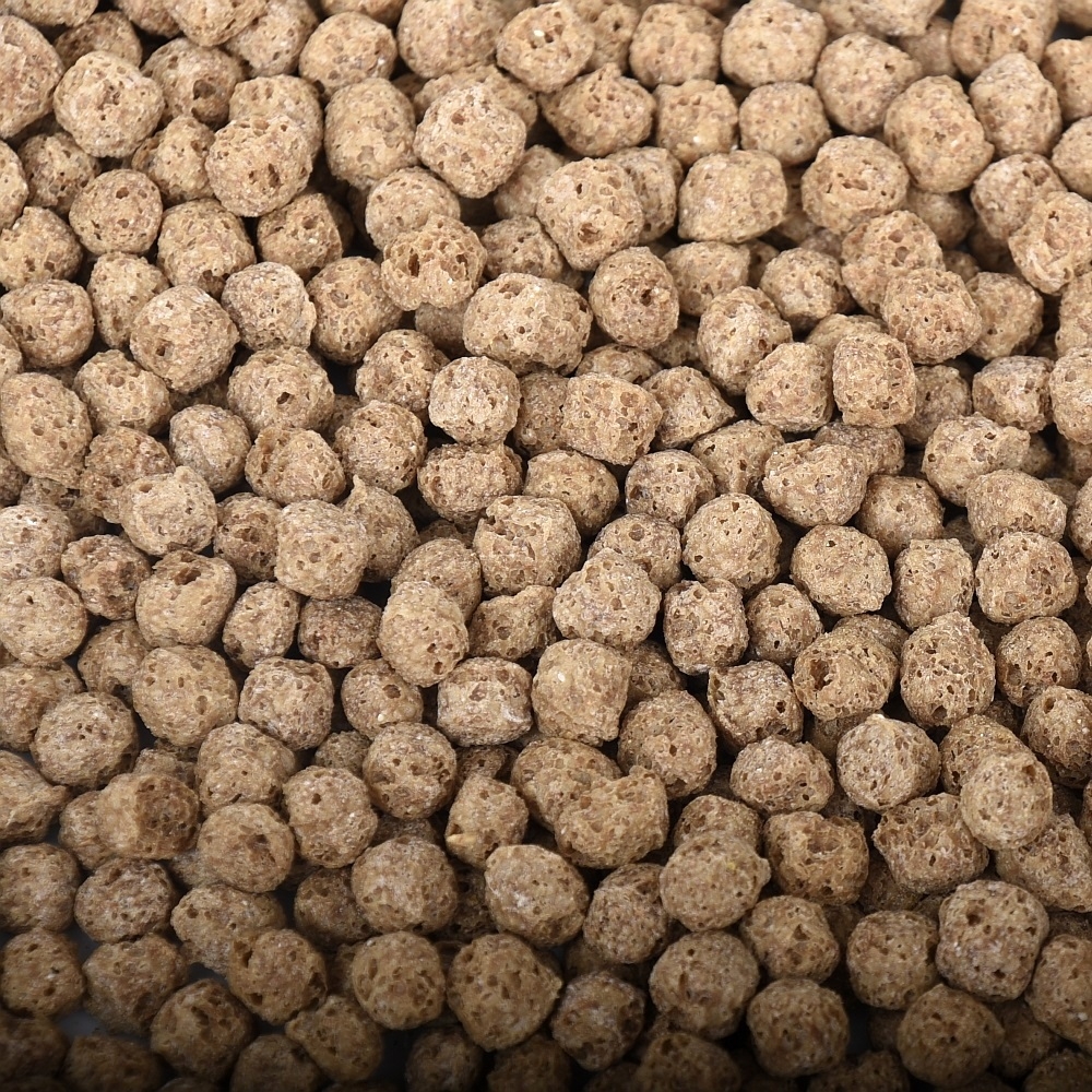 Wir haben es geschafft, den Mikronährstoff Koi Guard in Pelletform zu pressen. Dabei hilft eine geringe Menge Weizenzutaten, die als Trägerstoff für die Mikronährstoffe dienen. Würde man die Mikronährstoffe alleine verpressen, käme kein stabiles Pellet heraus. Sie können diese Leckerli zu jedem beliebigen Futter anbieten, nicht jedoch zu Kenko® Power. Denn hier sind schon so viele Mikronährstoffe enthalten, dass eine weitere Zugabe überflüssig erscheint.