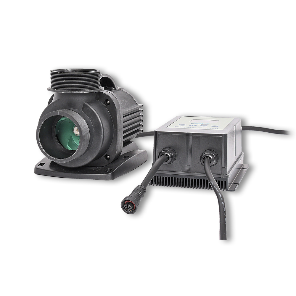 Regelbare und stromsparende Eco Pumpe für den Einsatz im Teich oder im Trockenen.