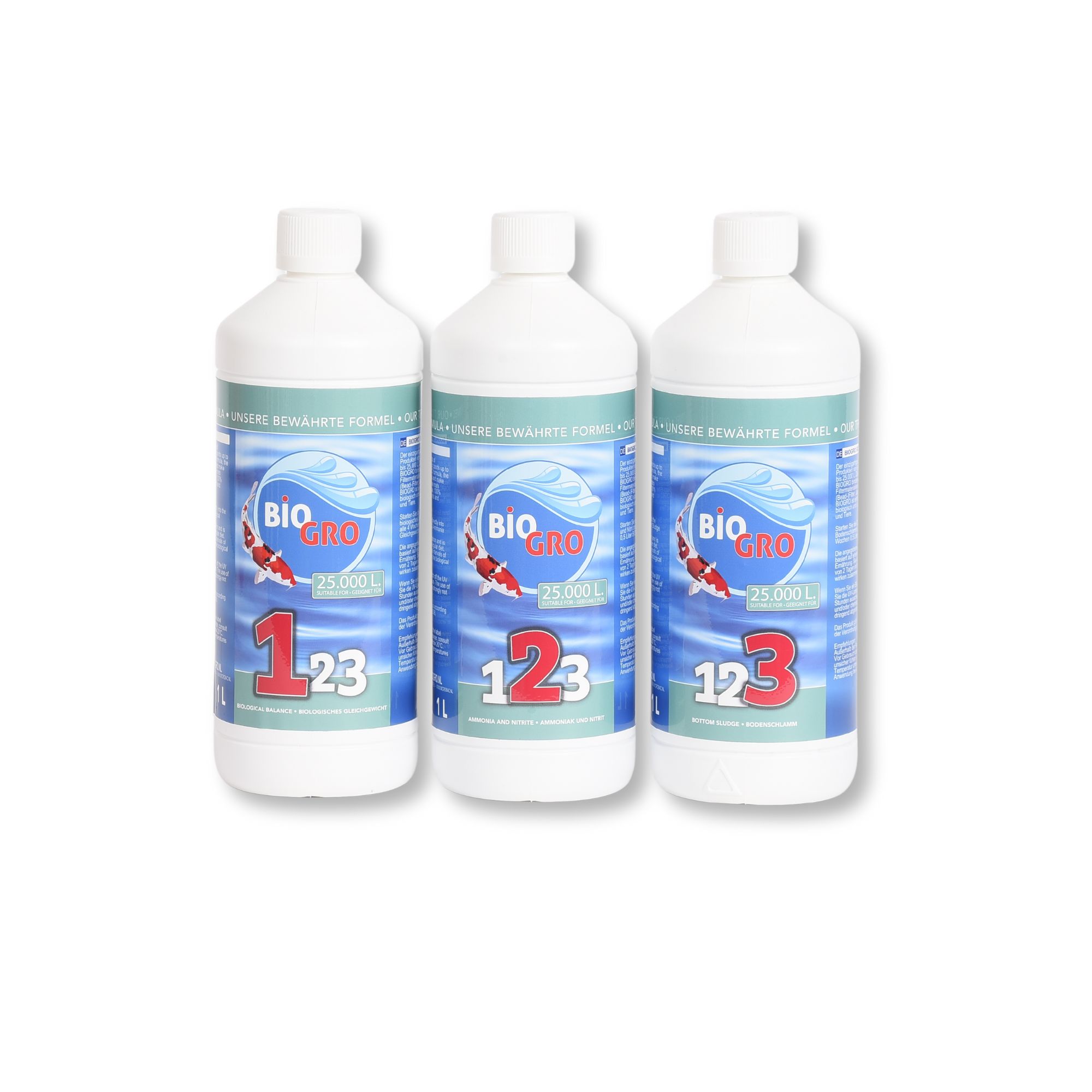 Sie setzen 3 aufeinander abgestimmte Produkte innerhalb einer Woche in ihrem Teich ein.