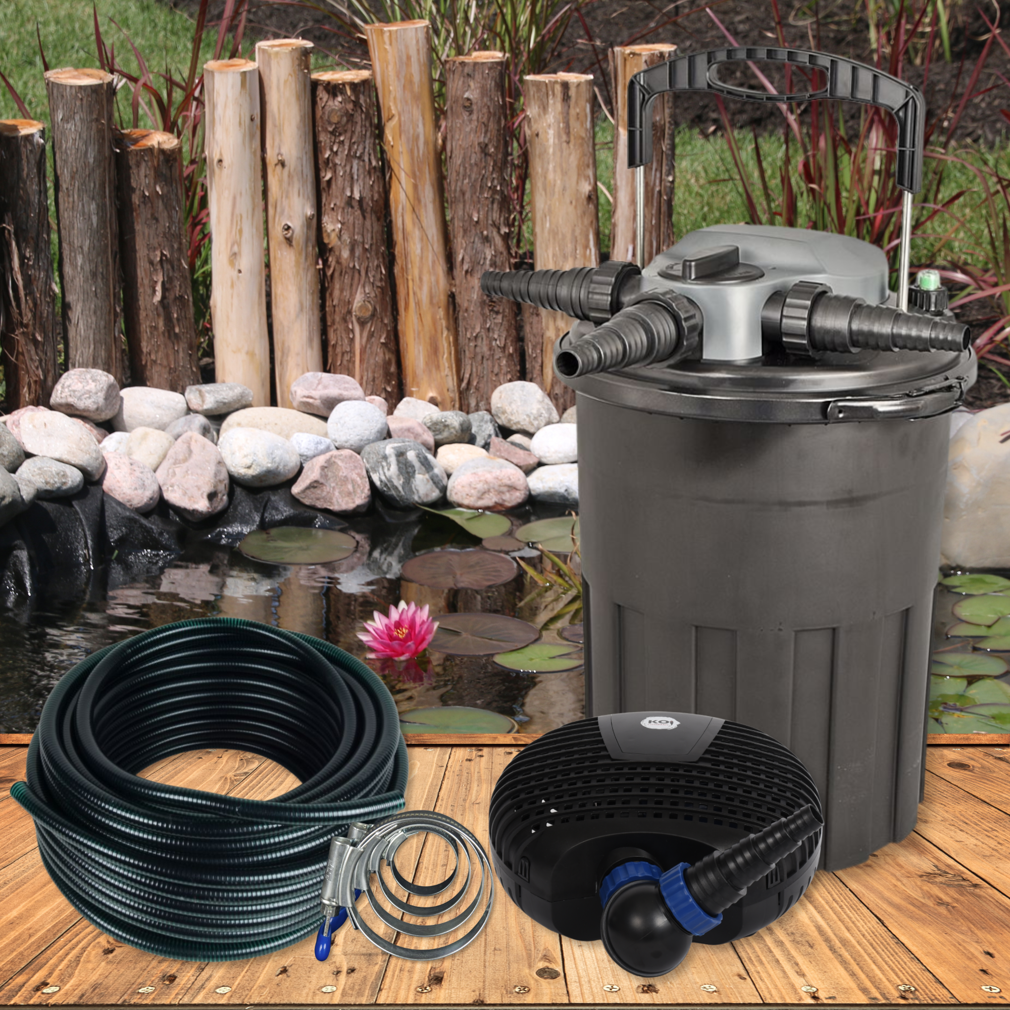 Schließen Sie alles an und schon kann es losgehen mit der Filterung Ihres kleinen Teiches, Quarantänebecken oder Innenhälterung.