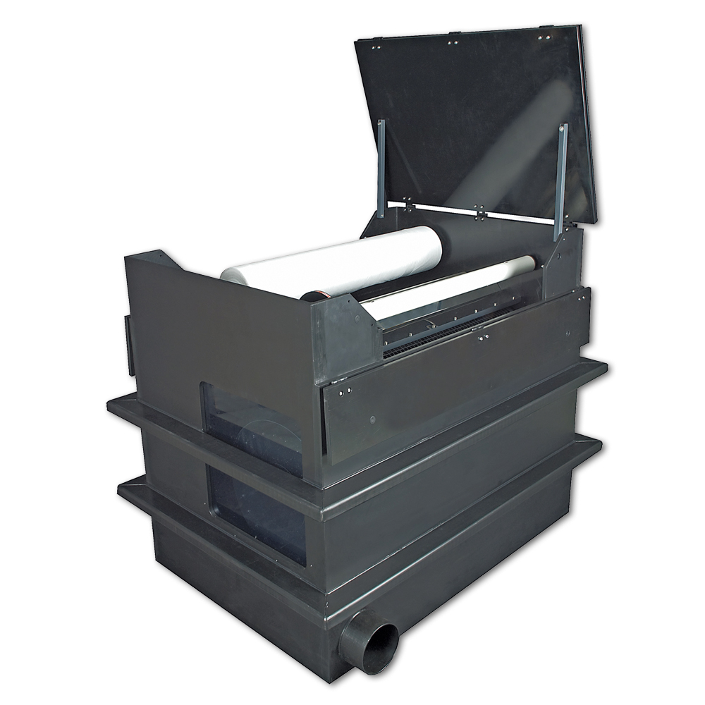 Die Funktionsweise des Filters ist so einfach, das es schon fast unglaublich klingt. Eine Pumpe fördert das Wasser in den Filter. Das Wasser muss durch Papiervlies, das sofort alle Schwebepartikel zurückhält. Das saubere Wasser gelangt in die Biostufe, in der nun gelöste Stoffe wie Ammonium und Nitrit abgebaut werden und von dort gelangt das Wasser wieder zurück in den Teich. Mit der Zeit verstopft das Filtervlies immer mehr und der Wasserstand im Filter steigt an. Über einen Überlauf wird eine Mechanik in Bewegung gesetzt, die das Filtervlies automatisch und ohne Strom weiterbefördert, bis wieder genügend Wasserfluss erreicht wird. Somit wird ein Überlaufen oder eine Filterunterfunktion verhindert.