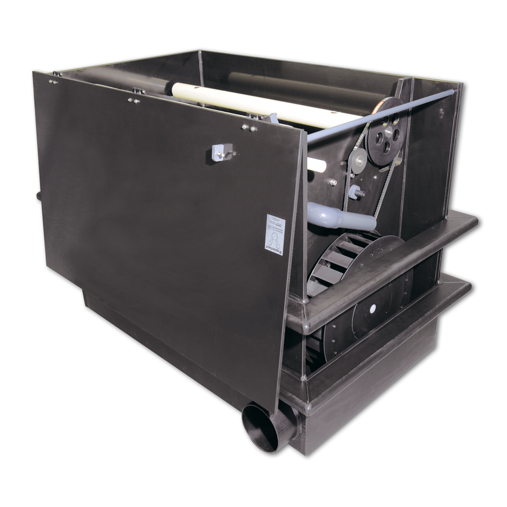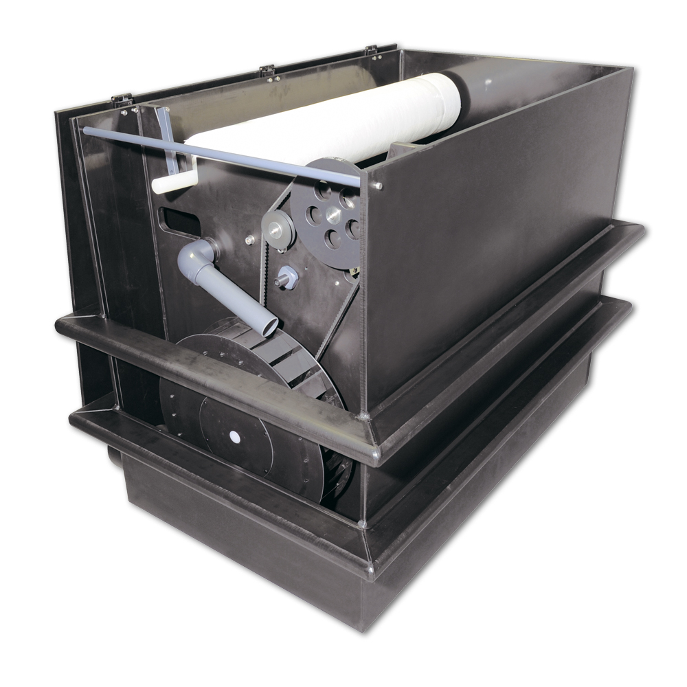 Die Funktionsweise des Filters ist so einfach, das es schon fast unglaublich klingt. Eine Pumpe fördert das Wasser in den Filter. Das Wasser muss durch Papiervlies, das sofort alle Schwebepartikel zurückhält. Das saubere Wasser gelangt in die Biostufe, in der nun gelöste Stoffe wie Ammonium und Nitrit abgebaut werden und von dort gelangt das Wasser wieder zurück in den Teich. Mit der Zeit verstopft das Filtervlies immer mehr und der Wasserstand im Filter steigt an. Über einen Überlauf wird eine Mechanik in Bewegung gesetzt, die das Filtervlies automatisch und ohne Strom weiterbefördert, bis wieder genügend Wasserfluss erreicht wird. Somit wird ein Überlaufen oder eine Filterunterfunktion verhindert.