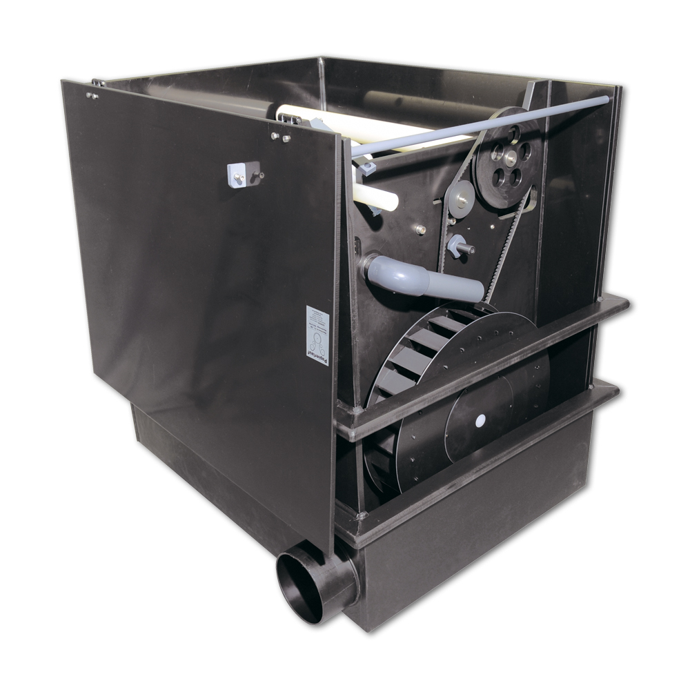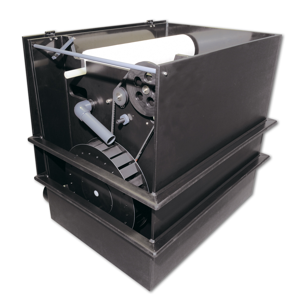 Die Funktionsweise des Filters ist so einfach, das es schon fast unglaublich klingt. Eine Pumpe fördert das Wasser in den Filter. Das Wasser muss durch Papiervlies, das sofort alle Schwebepartikel zurückhält. Das saubere Wasser gelangt in die Biostufe, in der nun gelöste Stoffe wie Ammonium und Nitrit abgebaut werden und von dort gelangt das Wasser wieder zurück in den Teich. Mit der Zeit verstopft das Filtervlies immer mehr und der Wasserstand im Filter steigt an. Über einen Überlauf wird eine Mechanik in Bewegung gesetzt, die das Filtervlies automatisch und ohne Strom weiterbefördert, bis wieder genügend Wasserfluss erreicht wird. Somit wird ein Überlaufen oder eine Filterunterfunktion verhindert.