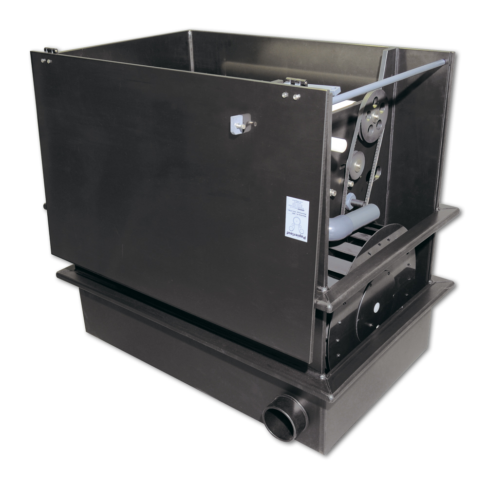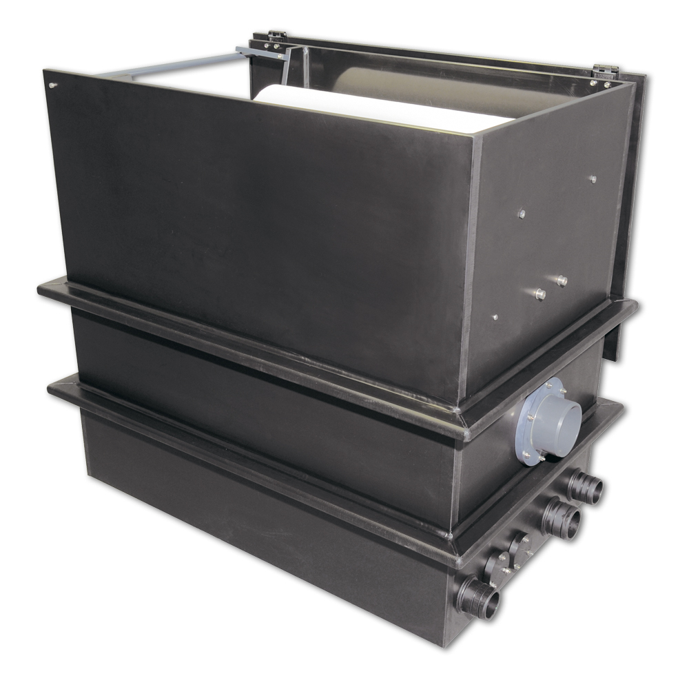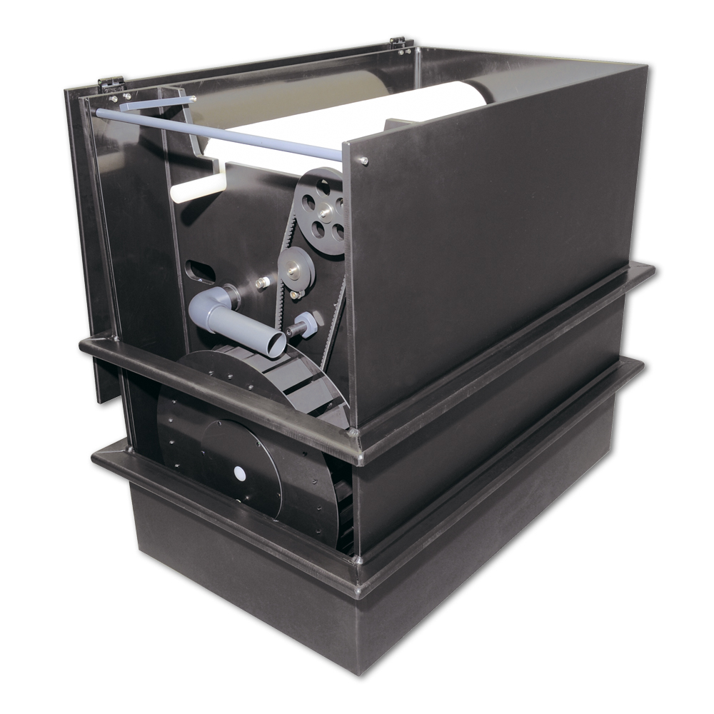 Die Funktionsweise des Filters ist so einfach, das es schon fast unglaublich klingt. Eine Pumpe fördert das Wasser in den Filter. Das Wasser muss durch Papiervlies, das sofort alle Schwebepartikel zurückhält. Das saubere Wasser gelangt in die Biostufe, in der nun gelöste Stoffe wie Ammonium und Nitrit abgebaut werden und von dort gelangt das Wasser wieder zurück in den Teich. Mit der Zeit verstopft das Filtervlies immer mehr und der Wasserstand im Filter steigt an. Über einen Überlauf wird eine Mechanik in Bewegung gesetzt, die das Filtervlies automatisch und ohne Strom weiterbefördert, bis wieder genügend Wasserfluss erreicht wird. Somit wird ein Überlaufen oder eine Filterunterfunktion verhindert.