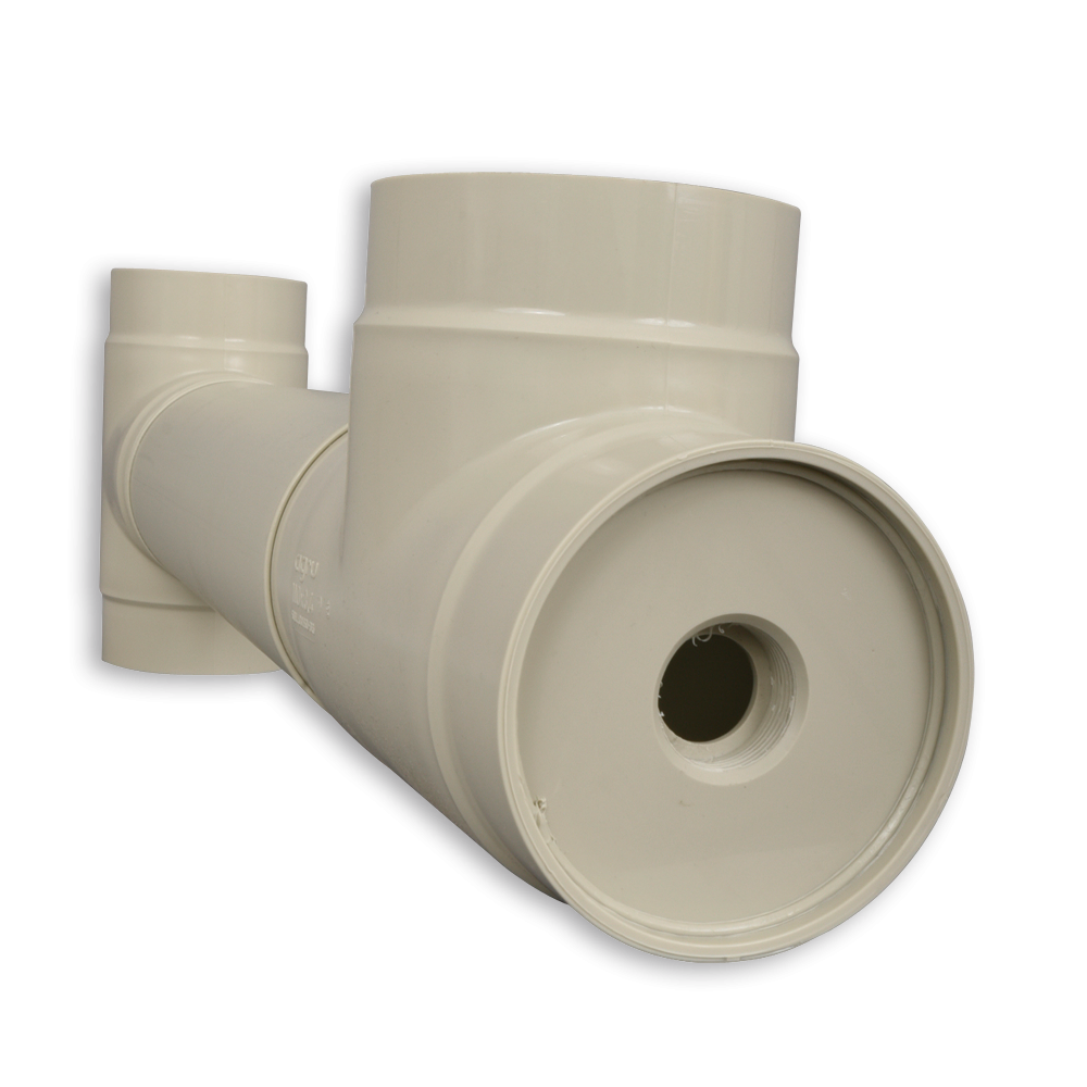 Das UVC Gehäuse hat 3 x 110 mm Ein- bzw. Abläufe, die indivduell betrieben werden können.