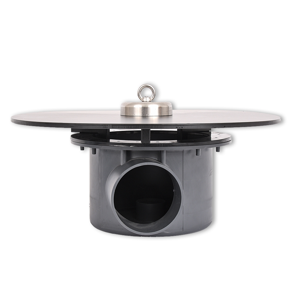 Der Genesis Bodenablaufdeckel für Standard Bodenablauf (200mm) mit Kunststoffführung inkl. Beschwerung kann direkt auf unseren Standard Bodenablauf (Art.-Nr.80100) aufgesetzt werden