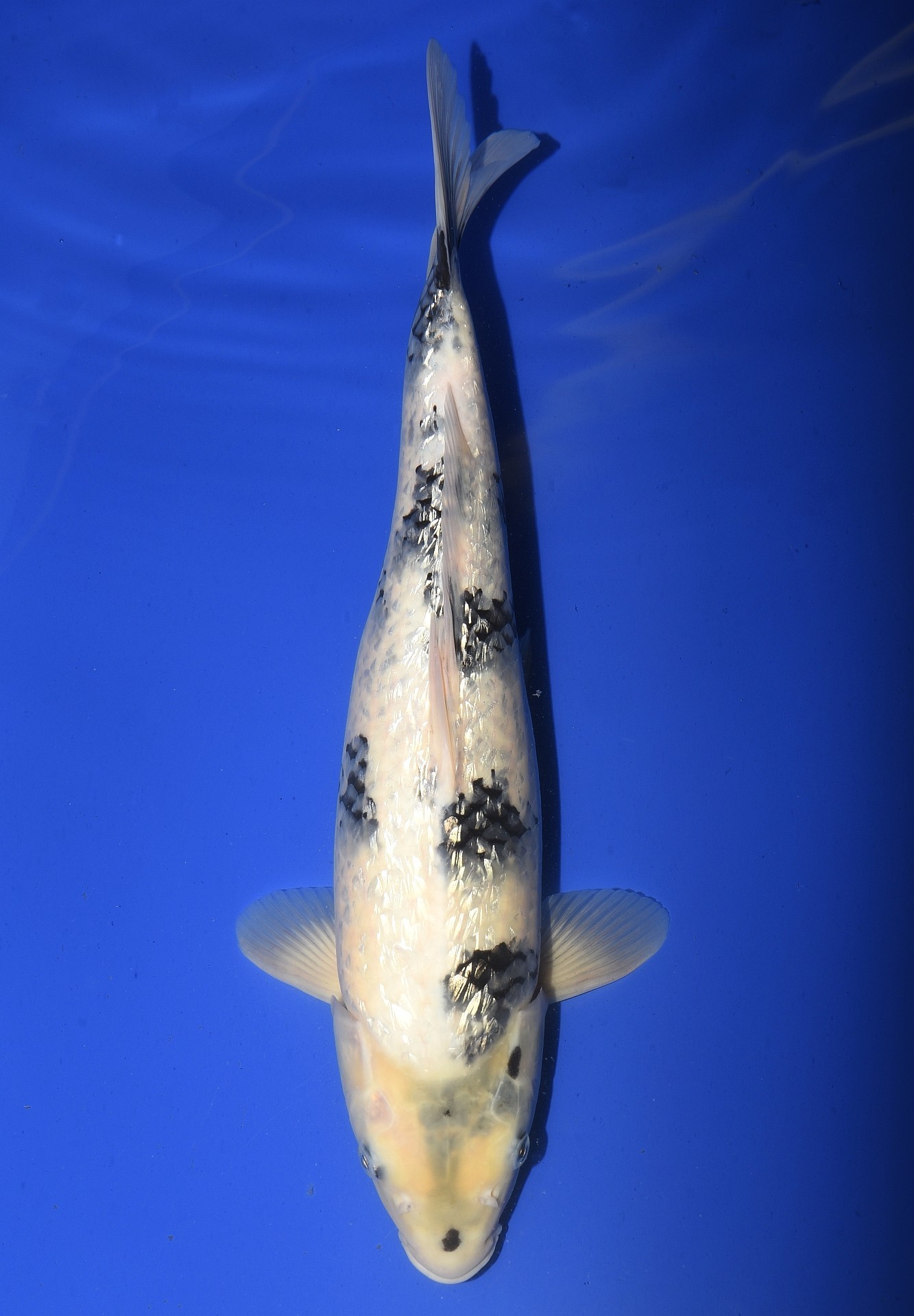 Dieser Ginrin Shiro Utsuri ist eine ideale Wahl für Koi-Liebhaber, die einen edlen Koi mit strahlendem Glanz, kraftvoller Statur und einer sich entwickelnden Schwarzzeichnung suchen.