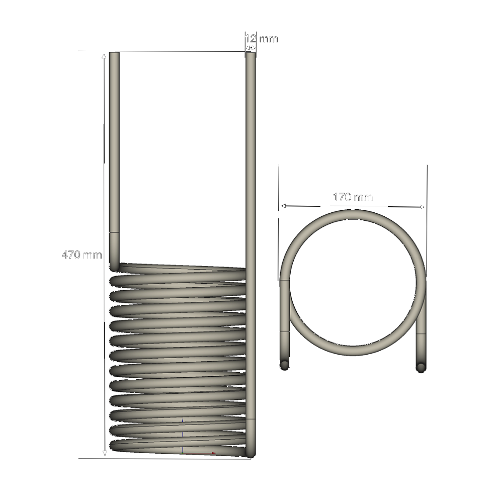 Diese Lösung ist einfacher. Der Wärmetauscher braucht nur ins Wasser gelegt zu werden. Der Heizspirale ist komplett aus rostfreiem Stahl (V4A), er verursacht keinen Gegendruck im System, das Wasser umströmt das Heizelement, um eine maximale Wärmeabgabe zu sichern.