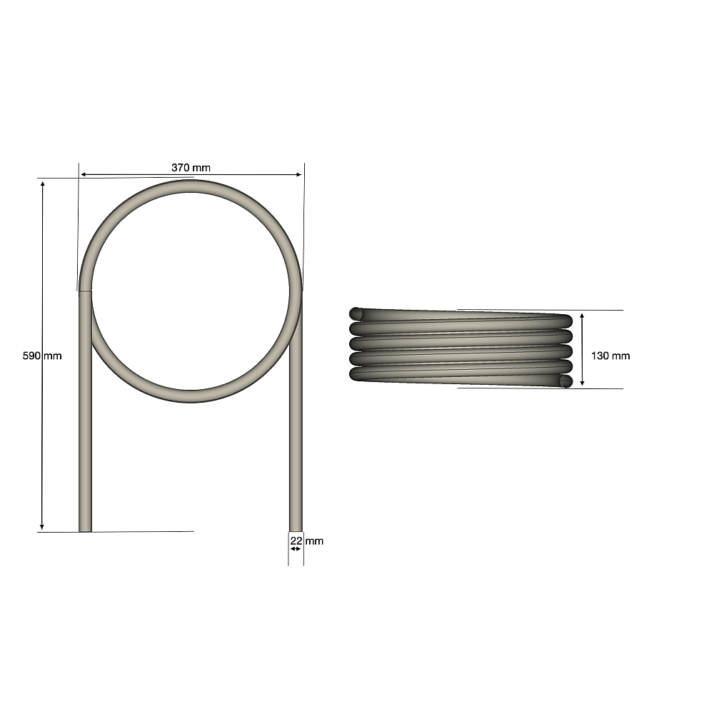 Diese Lösung ist einfacher. Der Wärmetauscher braucht nur ins Wasser gelegt zu werden. Der Heizspirale ist komplett aus rostfreiem Stahl (V4A), er verursacht keinen Gegendruck im System, das Wasser umströmt das Heizelement, um eine maximale Wärmeabgabe zu sichern.