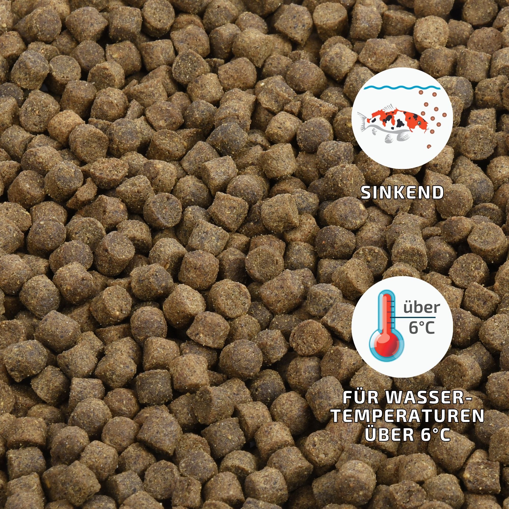 Dieses Störfutter ist für Wassertemperaturen über 6°C geeignet (aber nur für Störe) (sinkend).