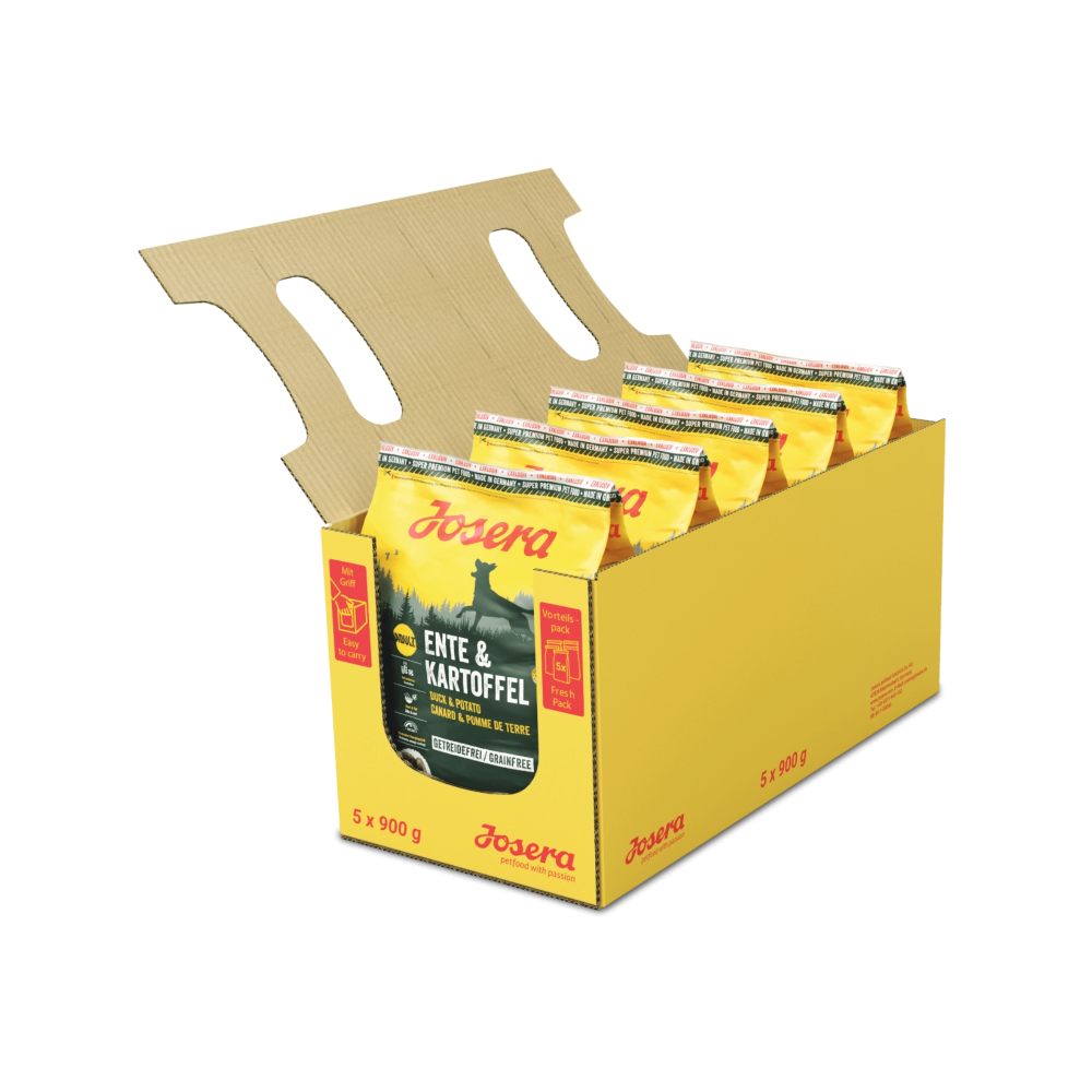 Josera Ente & Kartoffel enthält die gleichen hochwertigen Proteine wie unser Aufzuchtfutter Josera YoungStar – somit eignet es sich hervorragend als Folgefutter zur problemlosen Umstellung nach dem Eintritt ins Erwachsenenalter.