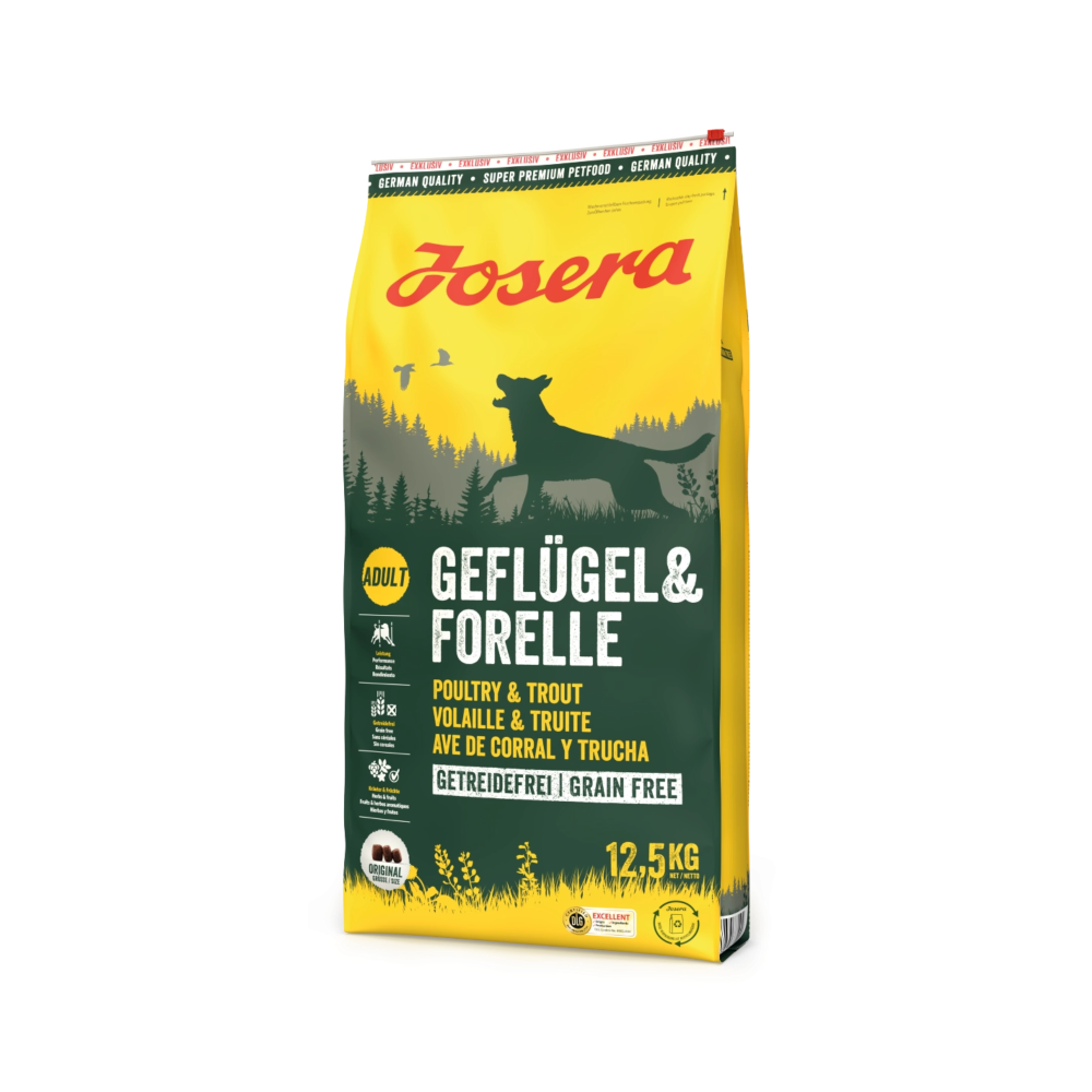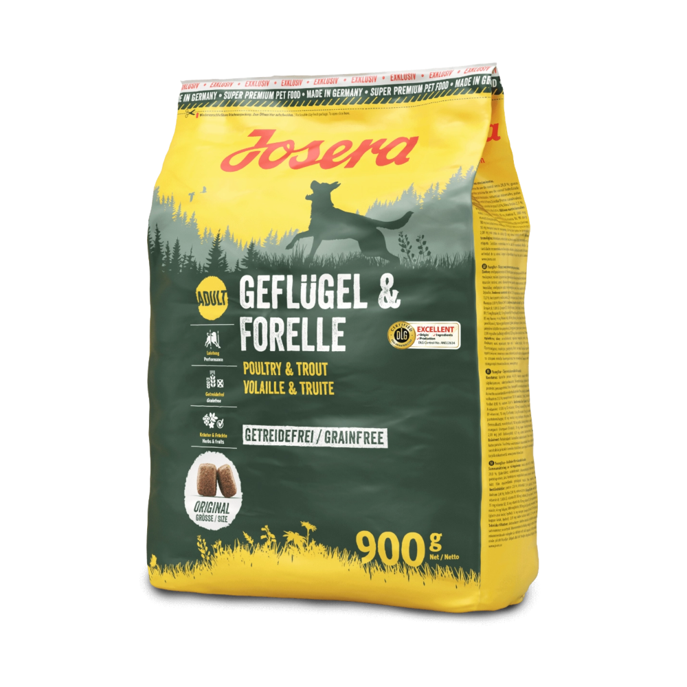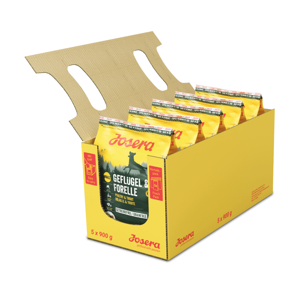 Für sehr sportliche Naturliebhaber liefert unser Josera Geflügel & Forelle ohne Getreide die nötige Energie. Die Rezeptur ist mit Süßkartoffel und Erbse verfeinert und leicht verträglich. Ausgewählte Kräuter und Früchte sorgen außerdem für eine schmackhafte Abwechslung im Napf Ihres Vierbeiners.