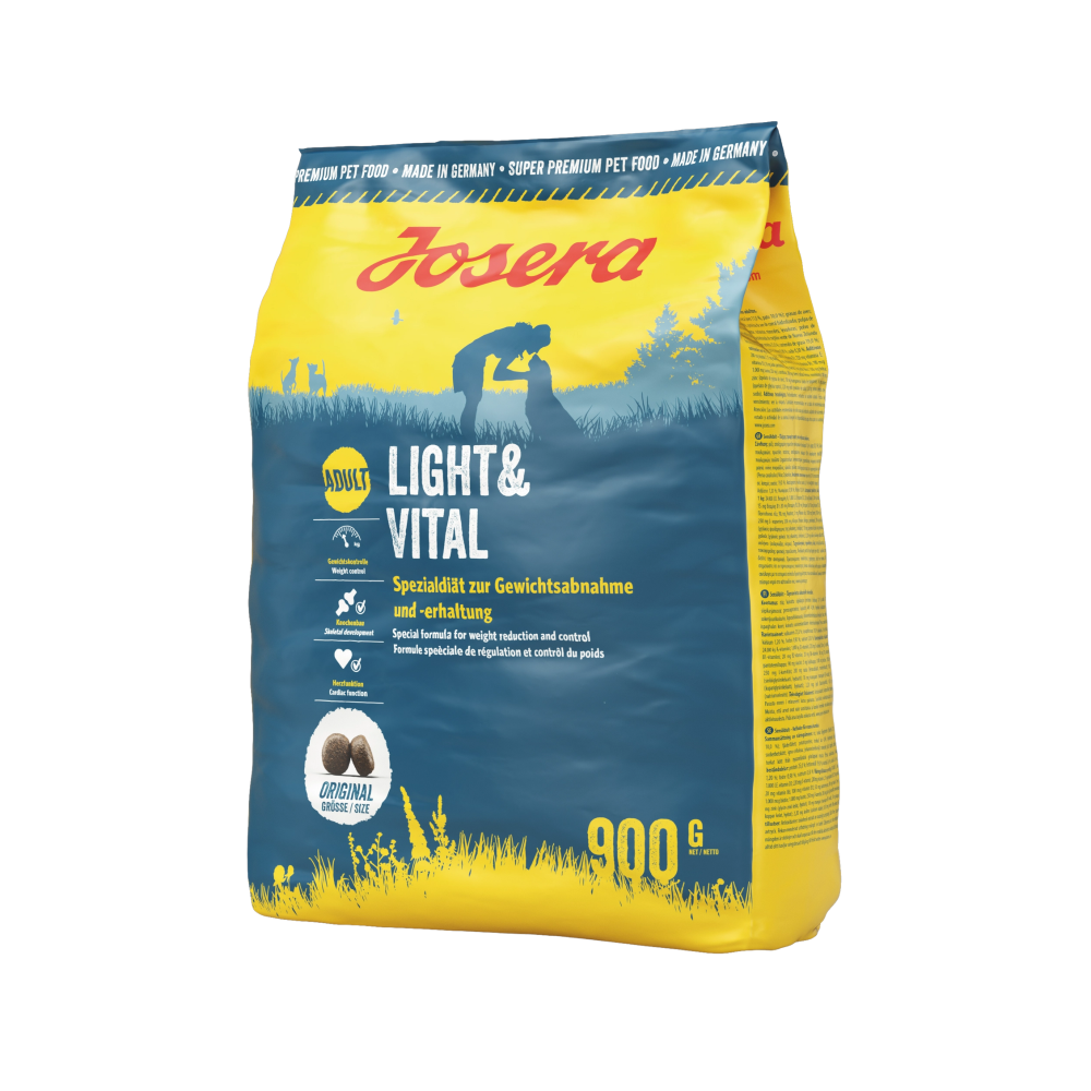 Josera Light und Vital ist optimal für Hunde, die zu Übergewicht neigen oder Ihr Gewicht reduzieren müssen. Durch den hohen Eiweißgehalt und L-Carnitin im Futter wird der Stoffwechsel und Fettstoffwechsel angeregt.
