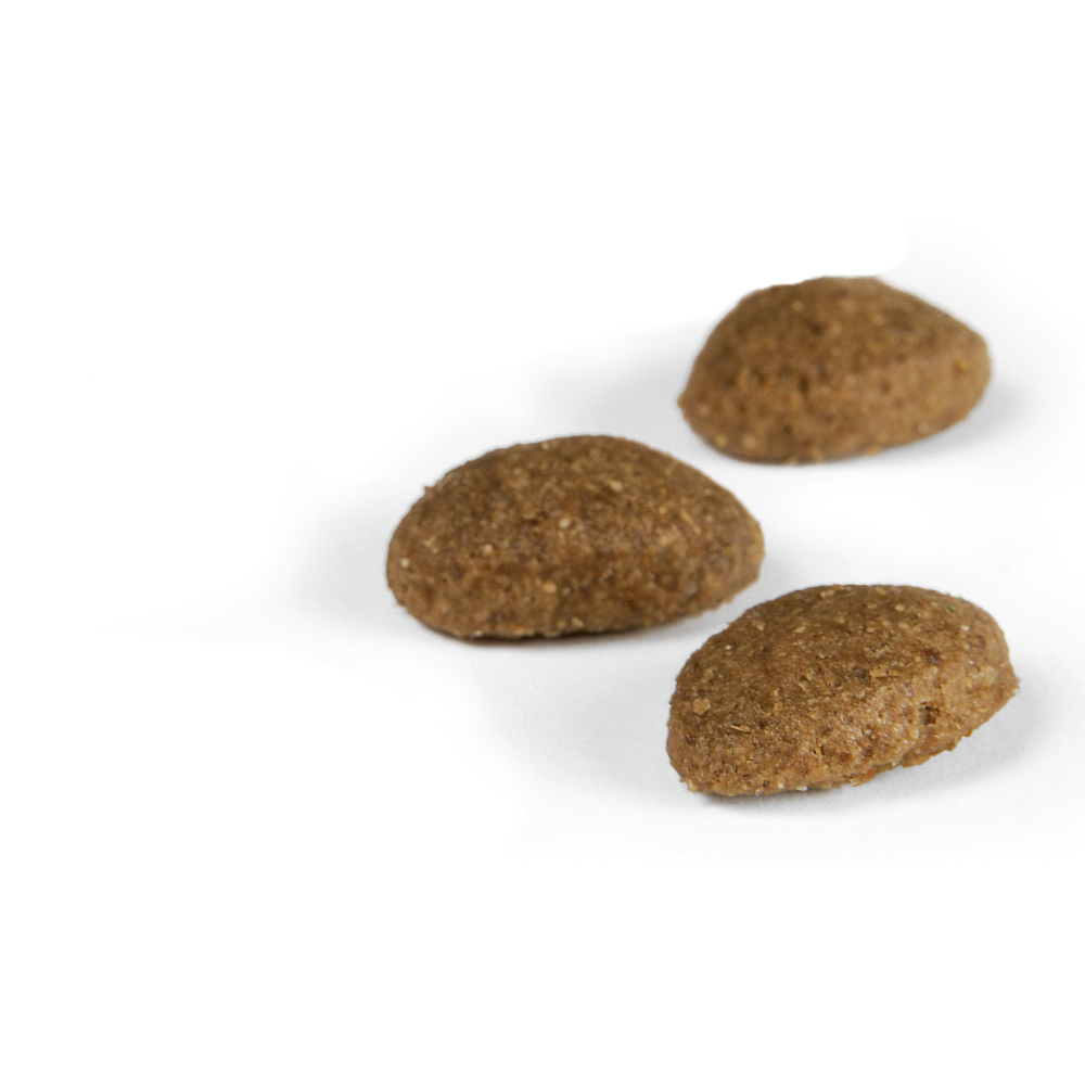 Eiweißreduzierte große Krokette ohne Mais. Ein reduzierter Proteingehalt entlastet Stoffwechsel, Leber und Nieren. Wertvolle Fettsäuren sorgen für gesunde Haut und glänzendes Fell.