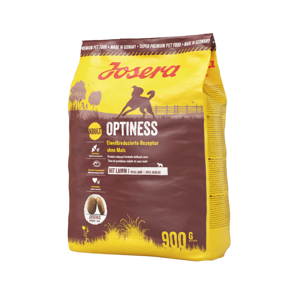 Josera Optiness ist genau das richtige Futter für normal aktive Hunde, die das Besondere lieben: eine schonende Kost ohne Weizen, Soja und Mais, Kartoffeln und Lammfleisch machen Josera Optiness besonders bekömmlich.
