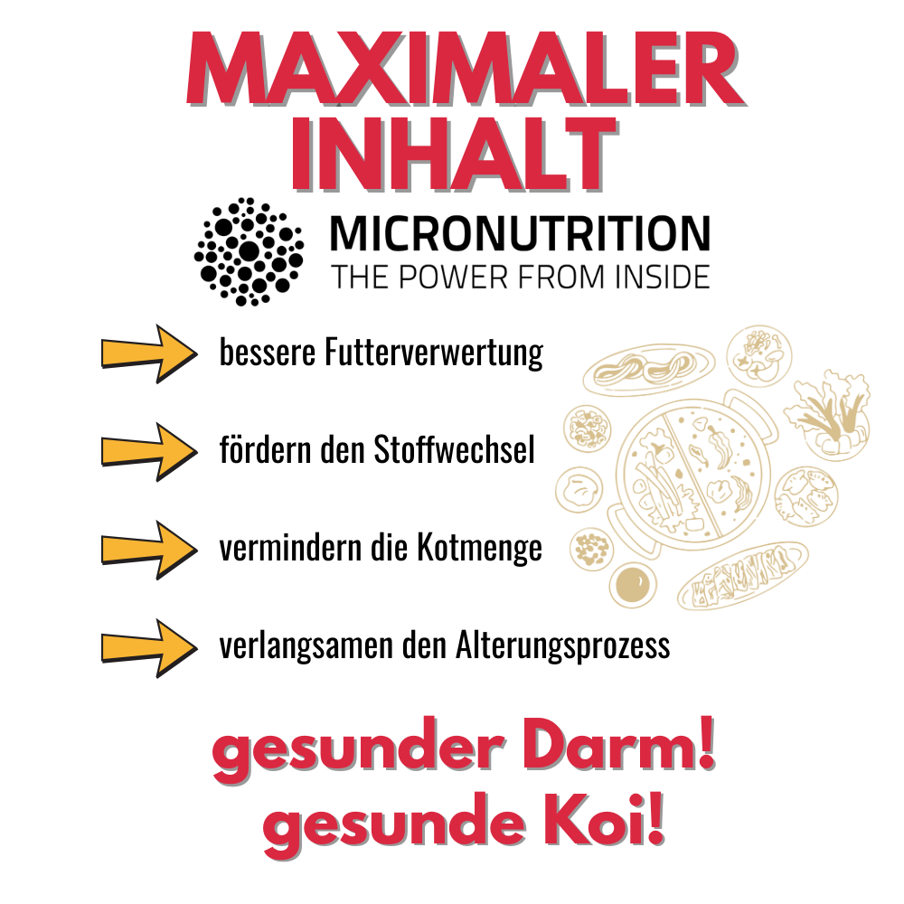 Das Futter wird von unseren Kois sehr gut vertragen und nicht vom Skimmer vorzeitig abgesaugt.