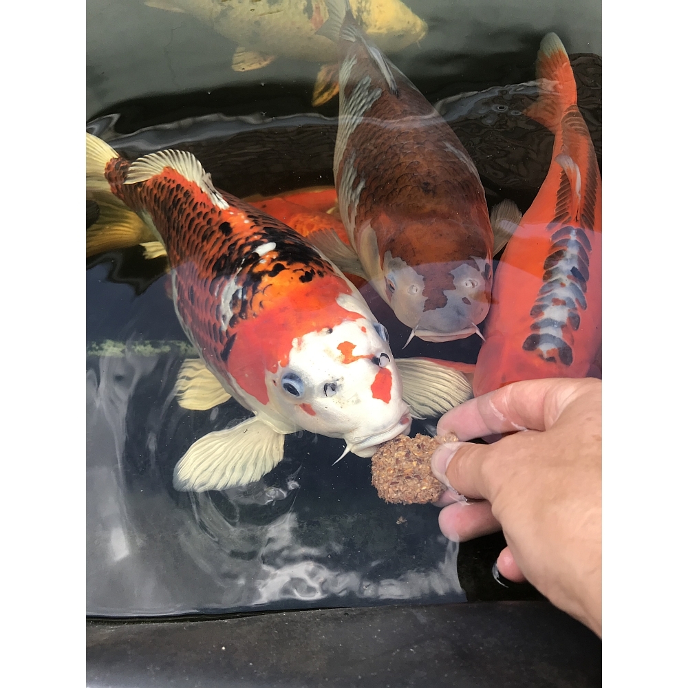 Ich gönne meinen Koi gelegentlich so einen Keks, dieser wird immer gerne angenommen.