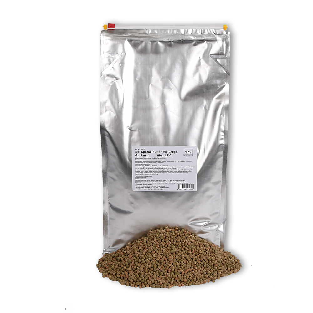 Der Koi Spezial Futtermix Large ist für Wassertemperaturen über 15°C geeignet -Sommermix-. (schwimmend)
