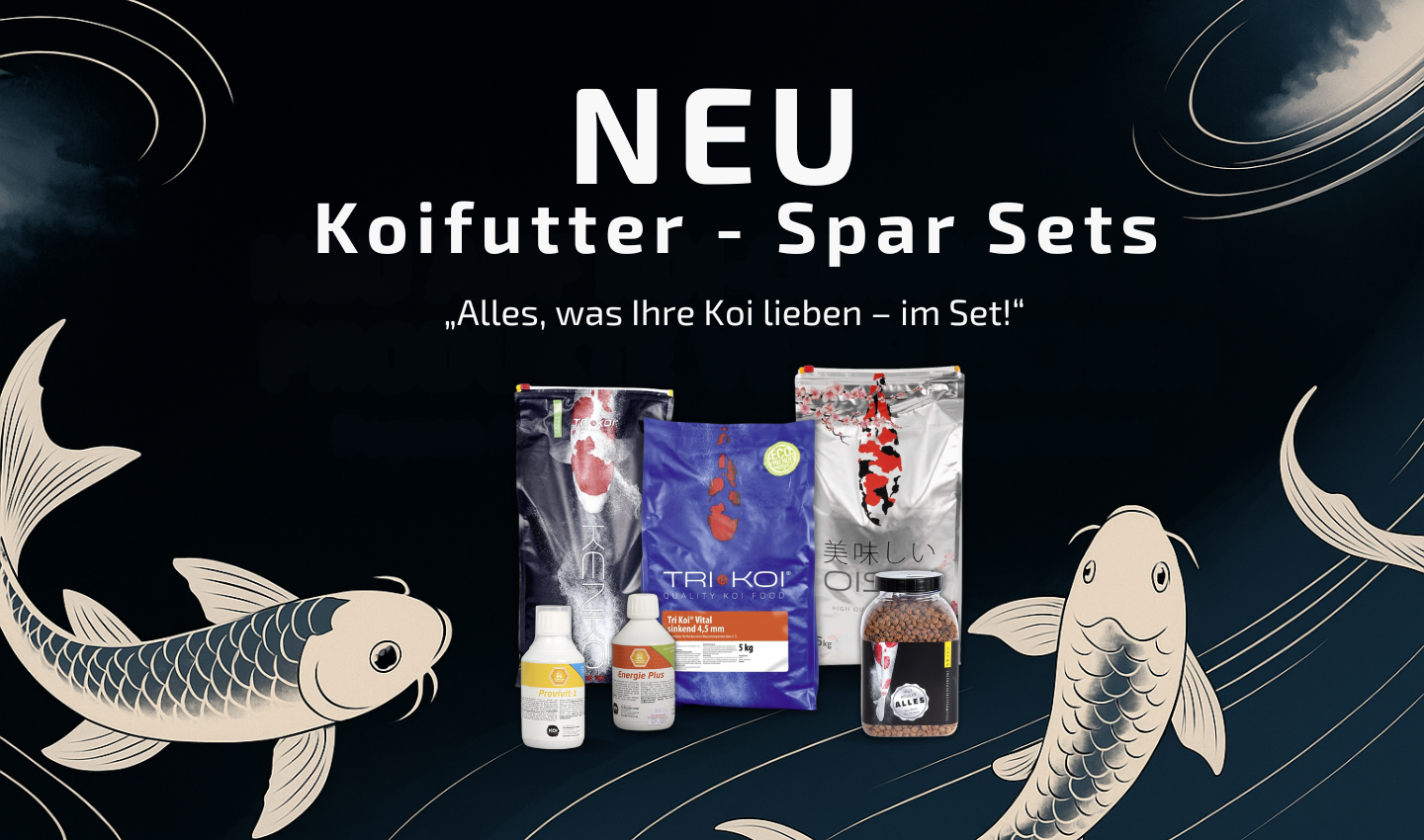 Die Koi Company Futter Sets in unserem Onlineshop basieren auf jahrelanger Erfahrung der Koiernährung. Hier findet jeder Koi was ihm am besten schmeckt.