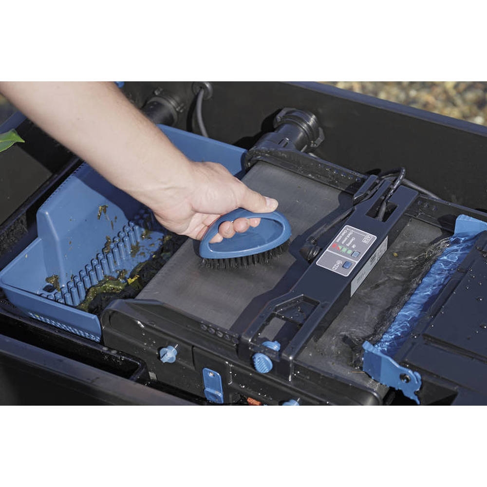 Das Filterband wird durch die Drehung vom groben Schmutz selbst gereinigt. Die justierbare Reinigungsautomatik steuert den Bandlauf anhand der Verschmutzung, inkl. LED-Kontrollleuchte. Ein manueller Bandlauf ist mittels einer Taste immer möglich.