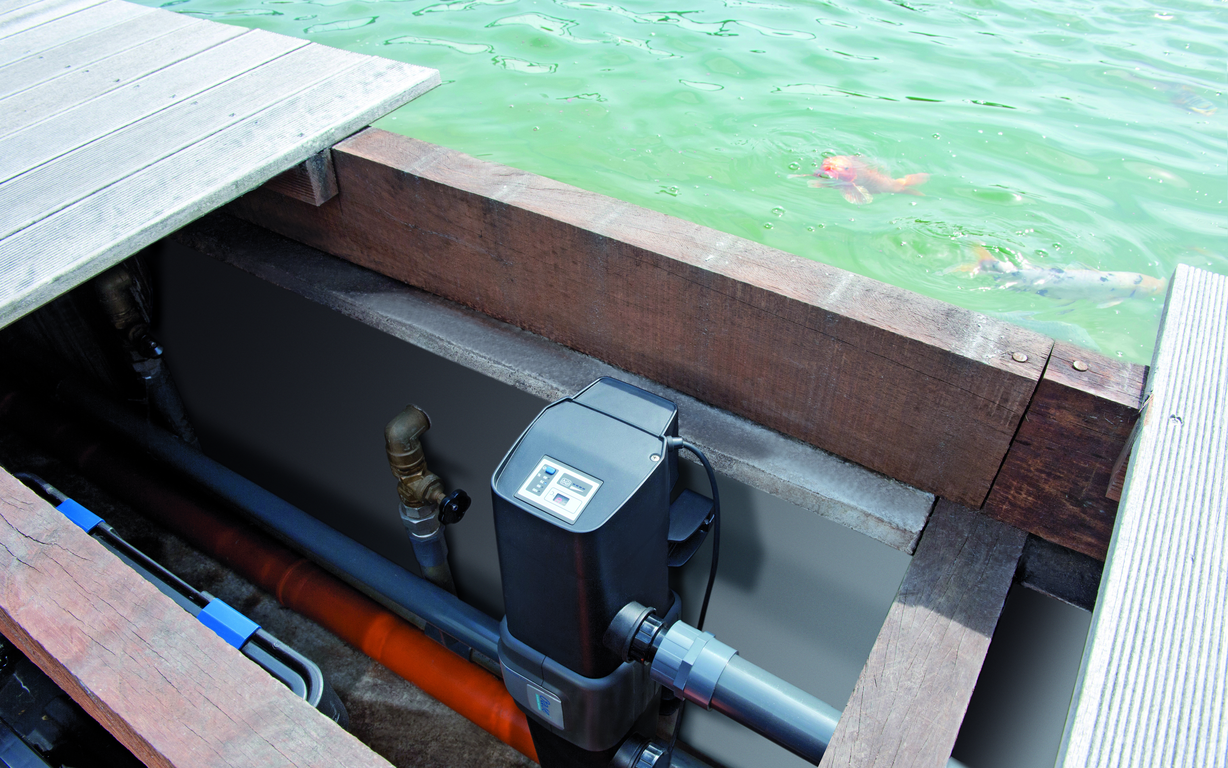Professionelles UVC Gerät sorgt für klares Wasser im Garten-, Koi- und Schwimmteich.