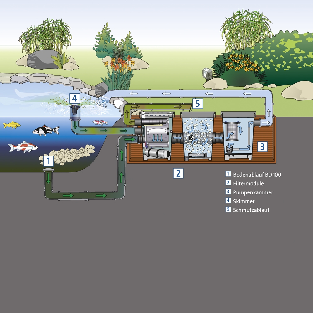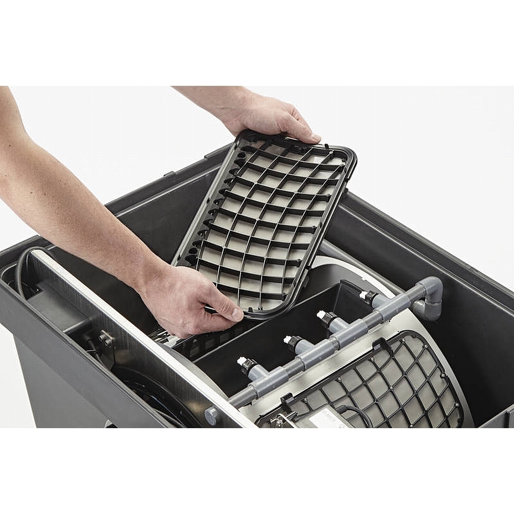 Der Oase Profi Clear Premium Trommelfilter kann als Modulfiltersystem installiert werden, so dass er komplett individual zusammenstellbar ist. Das Siebelement liefert durch Tiefenfiltration von bis zu 60 μm eine hohe Abscheideleistung.