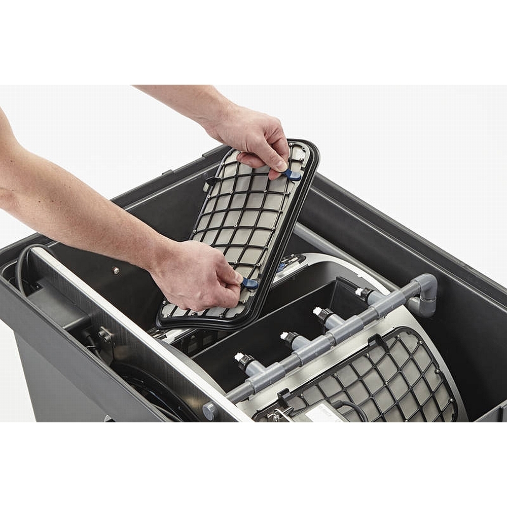 Die vollautomatische Steuerung kümmert sich um den Dreck, während Sie einen klaren Teich genießen. Intervallspülungen sowie manuelle Spülungen können bei Bedarf programmiert werden. Über die Trommelfilter Steuerung kann man die Zwangsspülung, Spüldauer und Zusatzspülungen einstellen. Für die 6 bar Spülung wird das gereinigte Teichwasser verwendet. Und das auch noch leise dank stabilem Gehäuse. Die Filter können für Reinigungszwecke einfach demontiert und auseinander gebaut werden. 8 einzelne Siebelemente sorgen für eine einfache Wartung.