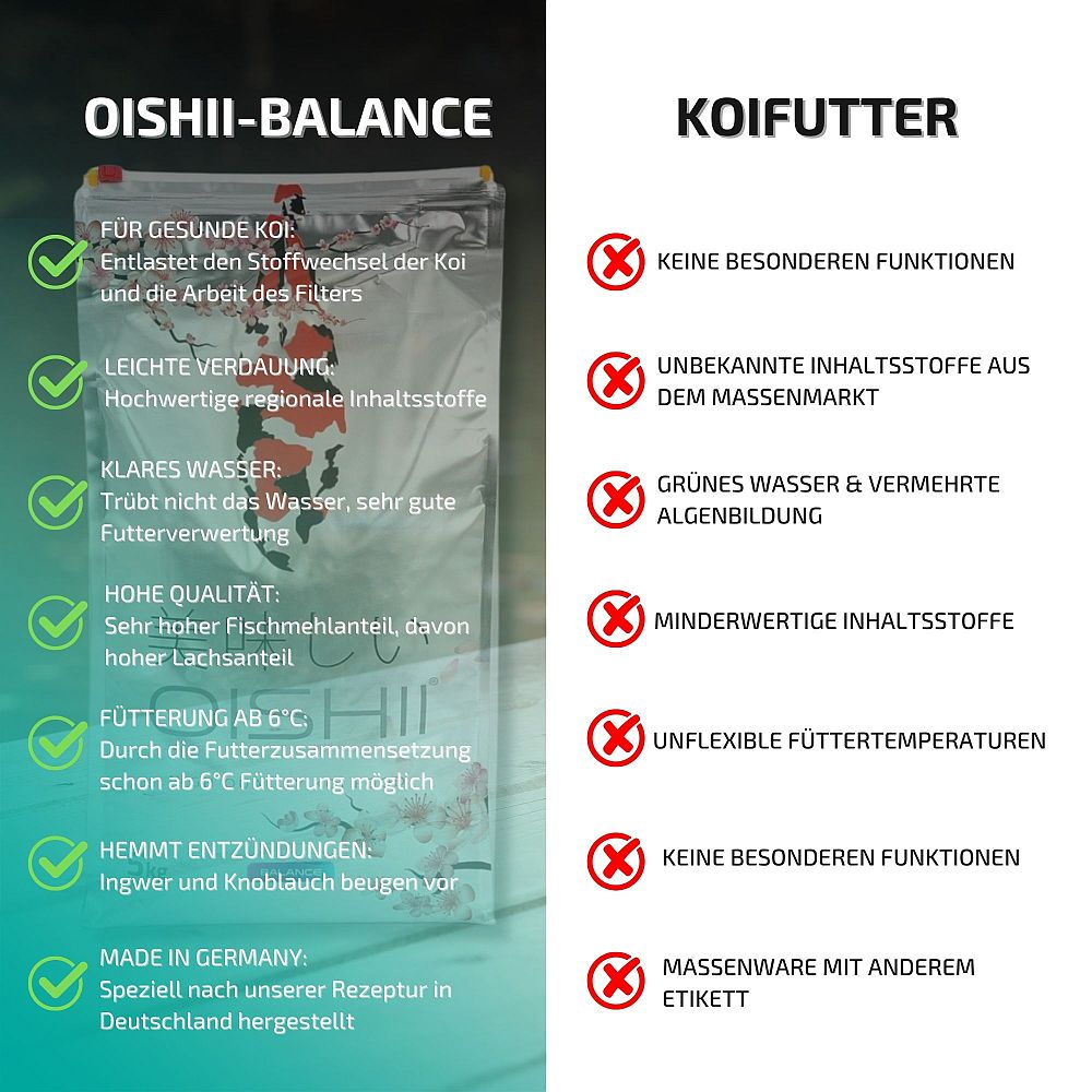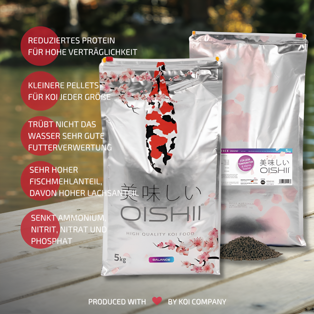 Oishii bedeutet Lecker! Und das muss ein Futter bekanntlich sein, damit unsere Koi es gerne fressen.