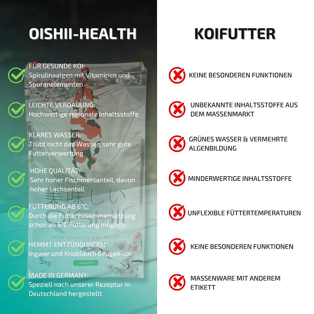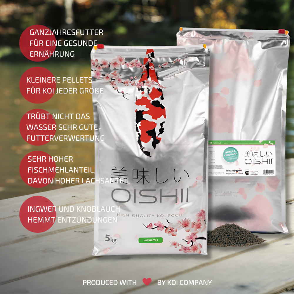 Oishii bedeutet Lecker! Und das muss ein Futter bekanntlich sein, damit unsere Koi es gerne fressen.