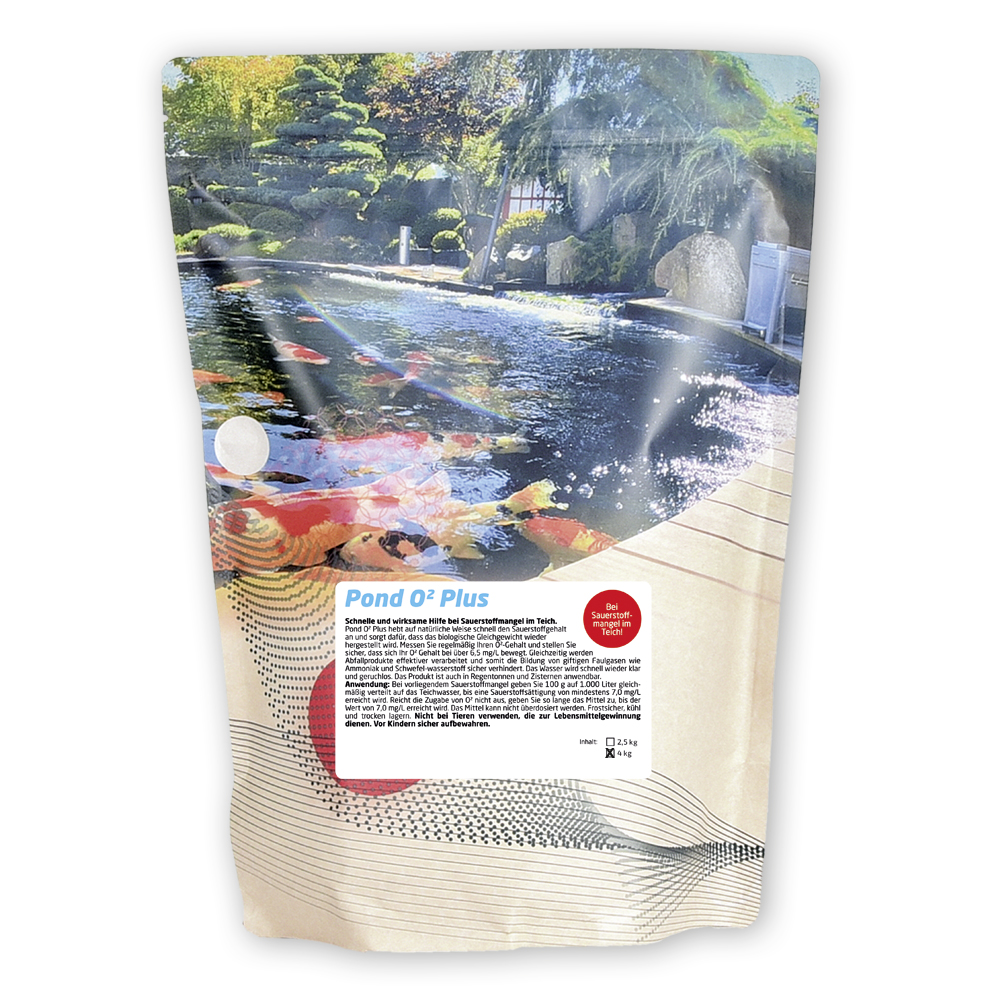 Hier ist schnelles Eingreifen erforderlich. Mit Pond O²-Plus helfen Sie sofort und wirksam. Pond O²-Plus hebt auf natürliche Weise schnell den Sauerstoffgehalt an und sorgt dafür, dass das biologische Gleichgewicht wieder hergestellt wird. Um das erfolgreich zu testen haben auch O²-Tests im Angebot. Messen Sie regelmäßig Ihren O²-Gehalt und stellen Sie sicher, dass sich Ihr O² Gehalt bei über 6,5 mg/L bewegt.