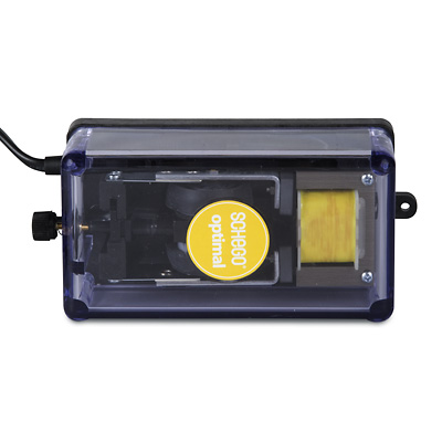 Sehr leise, laufruhige Membranpumpe. Sie ist stufenlos regulierbar. Die Membranen sind zuverlässig und langlebig. Das Gehäuse kann aufgehängt werden.
