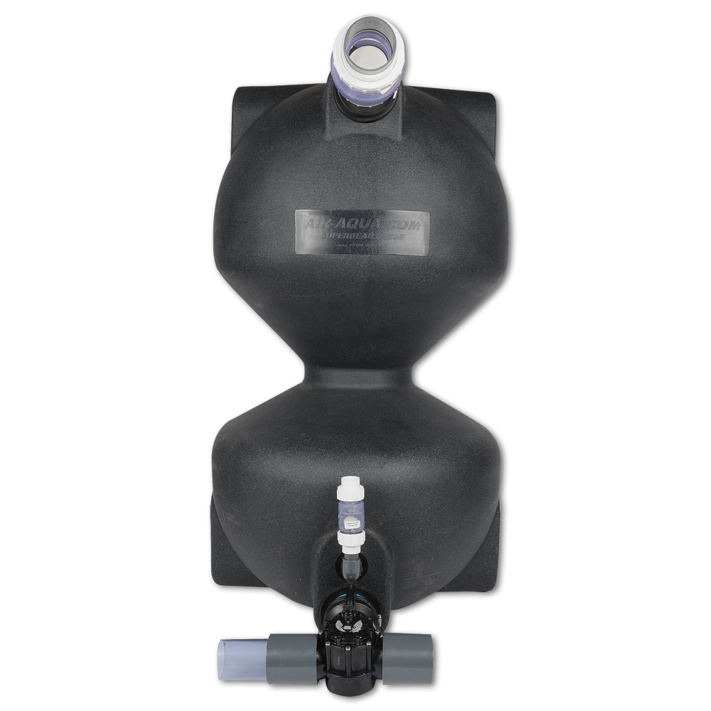 Wollen Sie einen bestehenden Teich in einen mit Schwerkraft umbauen, dann wird normalerweise der Teich größer und es ist ein neues Filtersystem notwendig. Mit dem bei Ihnen schon vorhandenen Superbead Filter ist dies nicht notwendig. Schließen Sie Ihre Bodenabläufe und Skimmer an ein neu zu erwerbendes Spaltsieb an und verwenden den bestehenden Supersieve dann als Filter. In dieser Zusammenstellung ist der Superbead small dann für 25 m³ und der Superbead large für 50 m³ geeignet.