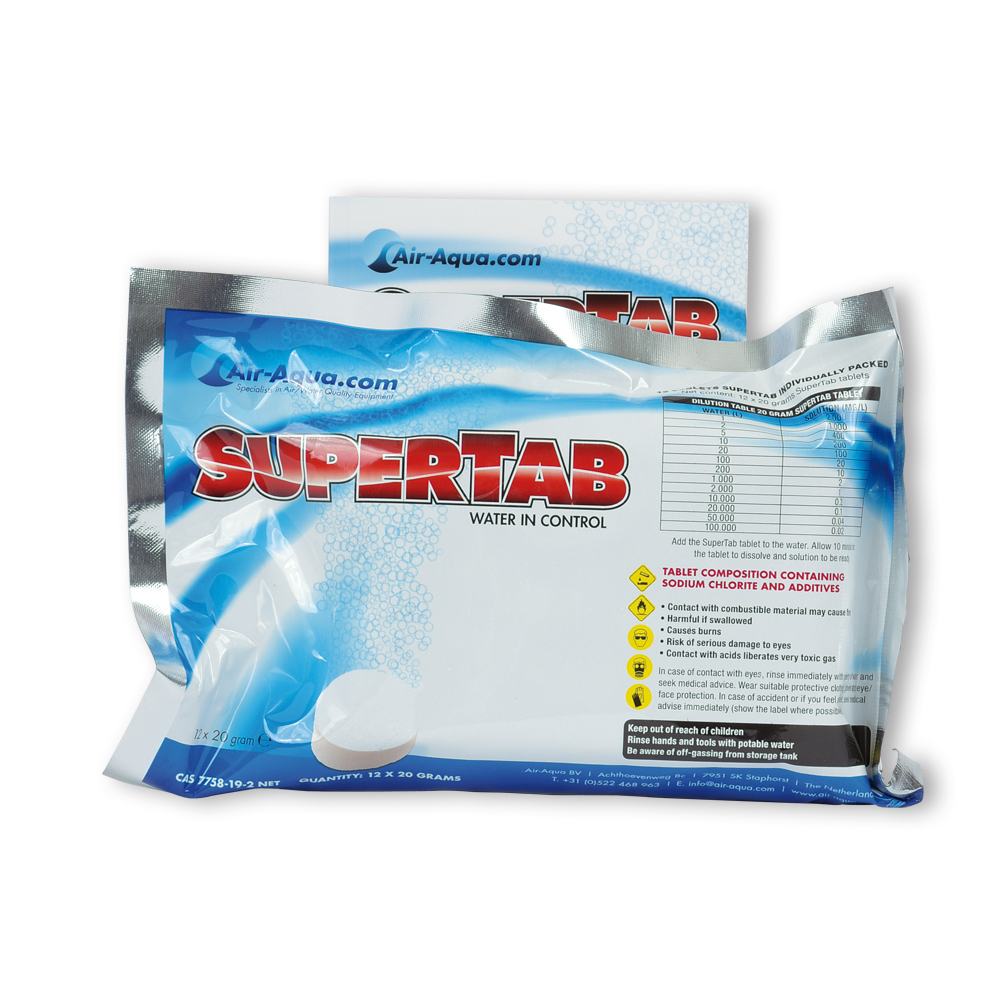 SuperTab enthält das Oxidans Chlordioxid (CLO2) in Tablettenform. Dabei handelt es sich um eine völlig neue Entwicklung, die die Anwendung dieses Produkts sehr einfach macht. Chlordioxid (nicht zu verwechseln mit Chlor!) ist ein relativ schwaches Oxidans. Daher darf es in bestimmten Konzentrationen sowohl in Trinkwasser als auch in, von lebenden Tieren/Organismen besiedelten, Teichen oder Becken frei verwendet werden. Chlordioxid ist schon seit beinahe 200 Jahren bekannt. Entdeckt wurde es 1814 von Humphrey Davy. Dieses einzigartige Oxidans kann schon bei sehr niedrigen Konzentrationen äußerst effektiv gegen Viren, Schimmel und pathogene Bakterien eingesetzt werden. Anaerobe Bakterien können keine Resistenz gegen Chlordioxid aufbauen, weil ihre Zellstruktur zerstört wird. Chlordioxid ist ein sehr selektives Oxidans und reagiert vor allem mit organischen Stoffen. Es erzeugt keine (schädlichen) Restprodukte. Nur eine sehr kleine Menge Chlorid (wie Küchensalz) bleibt nach Gebrauch zurück. Chlordioxid ist in geringen Konzentrationen im Wasser geruchlos, anders als etwa Chlor. Der größte Vorteil von Chlordioxid im Vergleich zu anderen Oxidantien (Wasserstoffperoxid, Ozon und Chlor) ist seine geringe Oxidationskraft in Kombination mit einem hohen Oxidationsvermögen. Chlordioxid wird häufig bei der Herstellung von Trinkwasser, der Verarbeitung und Lagerung von Lebensmitteln, im Obstanbau und in der Fleisch verarbeitenden Industrie eingesetzt.
