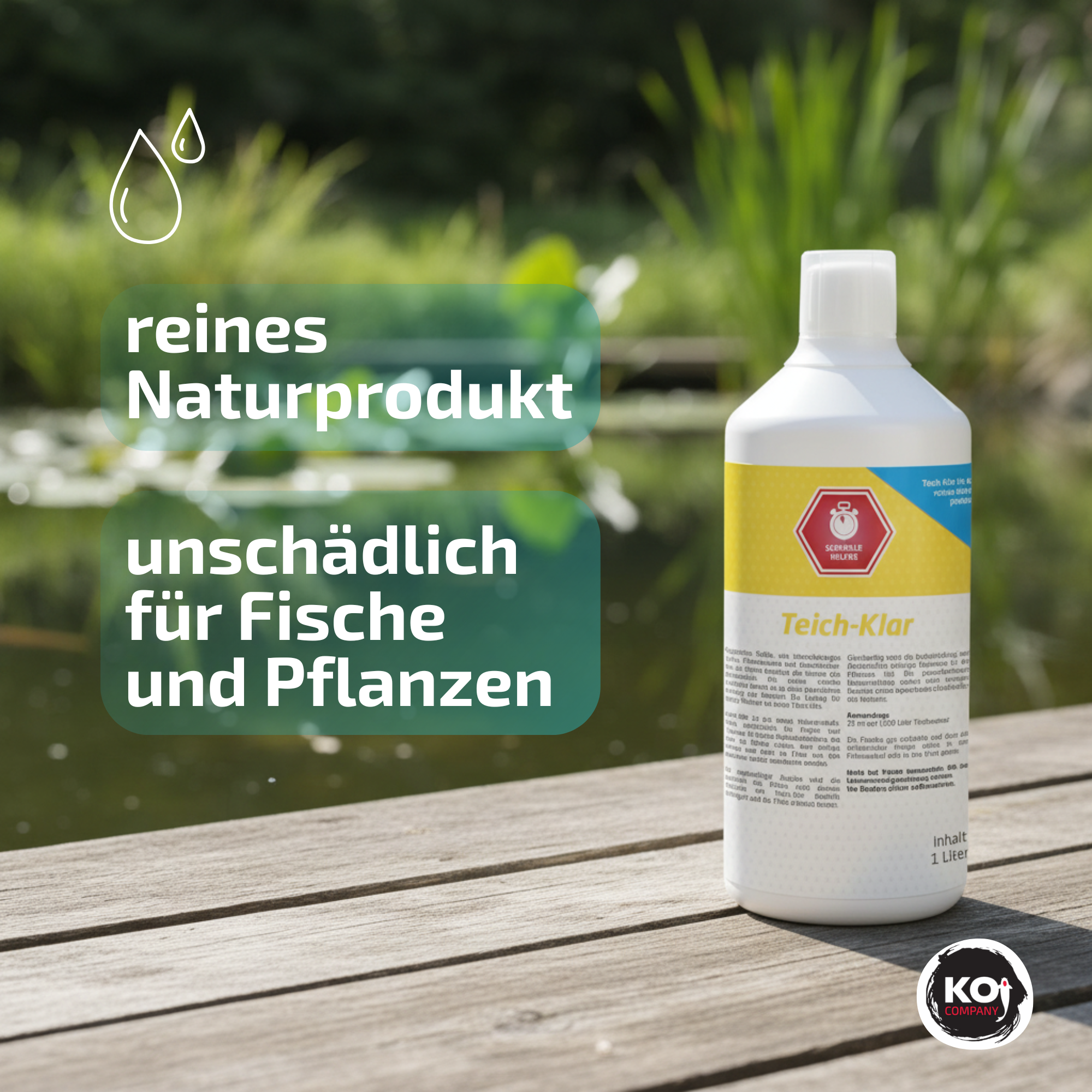 Teich-Klar ist ein reines Naturprodukt, völlig unschädlich für Fische und Pflanzen. Es bindet Schwebeteilchen, die dann zu Boden sinken, dort zerlegt werden und im Filter von den Bakterien restlos verarbeitet werden. Es eignet sich im Herbst optimal dazu, die organischen Reste vor der Überwinterung abzubauen.