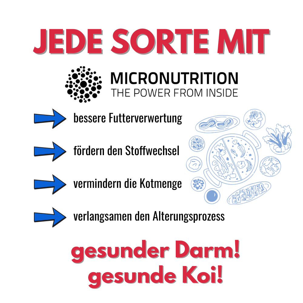Wenn Sie sich mit dem Hersteller näher auseinandersetzen (Alpha CH 31265) werden Sie zwangsläufig auch auf den exklusiven Mikronährstoffkomplex AQUACULTURE GUARD® stoßen. Dieser Stoff ist in jeder unserer Tri Koi® Futtersorten von Hokovit enthalten, sowie die exklusive Kräutermischung aus dem Kenko® Extra.