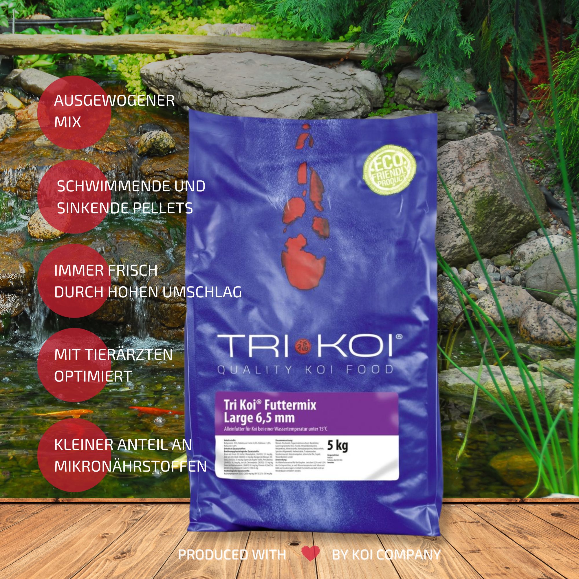 Bedingt durch unseren hohen Verbrauch erhalten Sie unseren Tri Koi® Futter Mix immer absolut frisch.