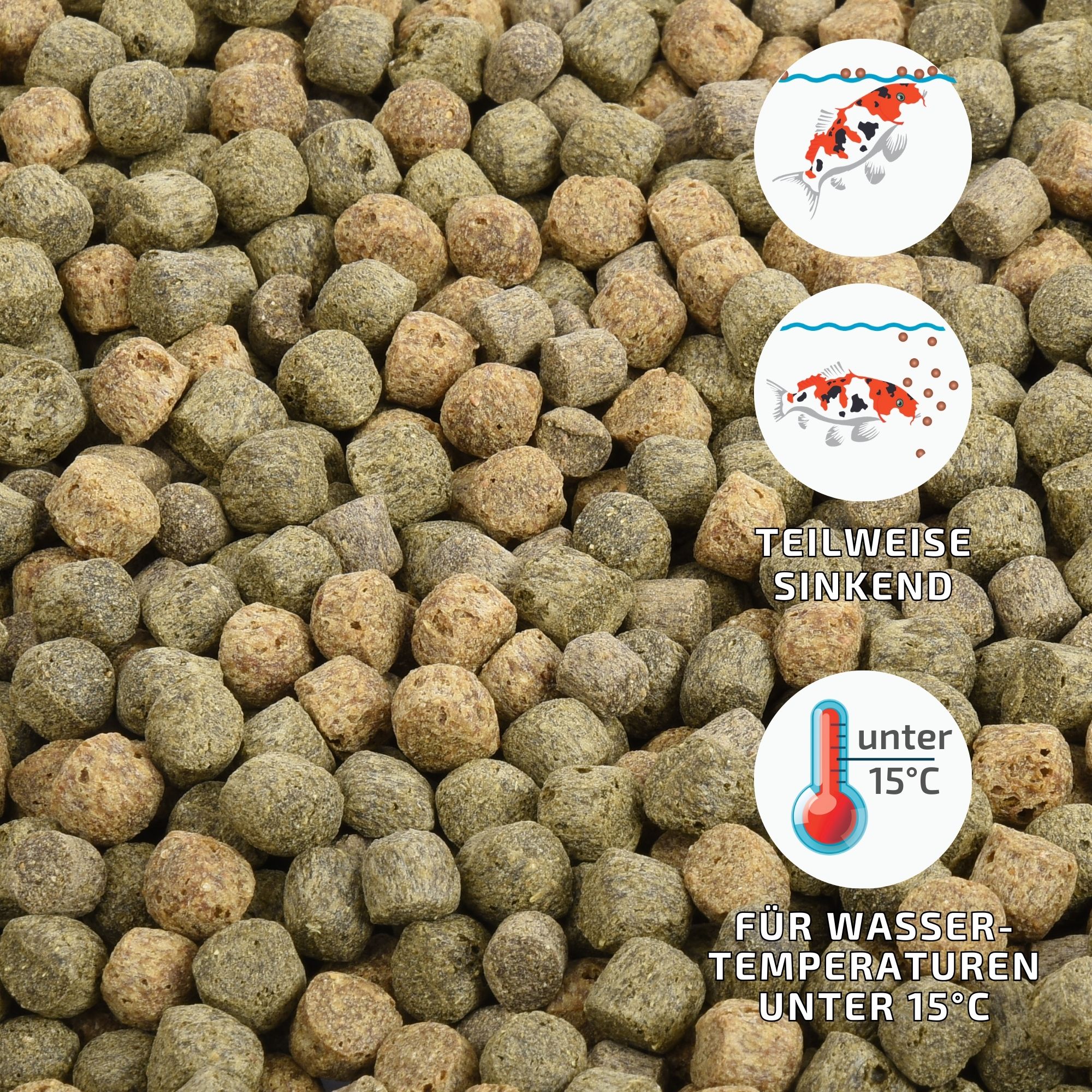 Wenn Sie dieses Futter mit Energie Plus auffetten, dann können Sie es bis zu einer Wassertemperatur von 6°C füttern.