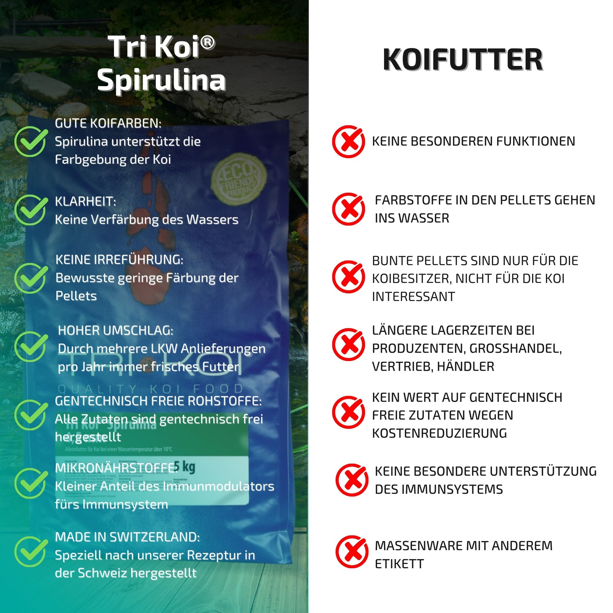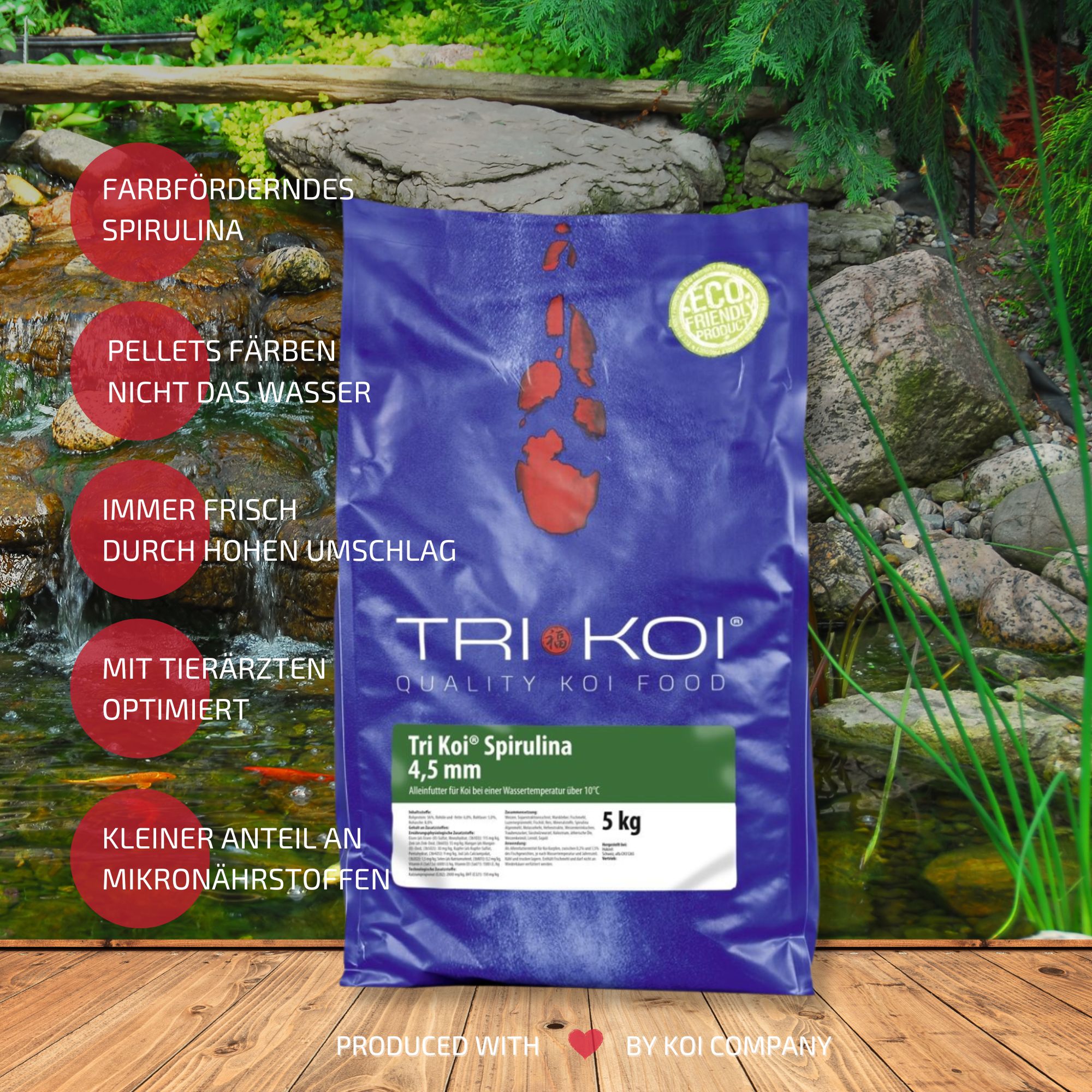 Bedingt durch unseren hohen Verbrauch erhalten Sie unser Tri Koi® Futter Spirulina immer absolut frisch.
