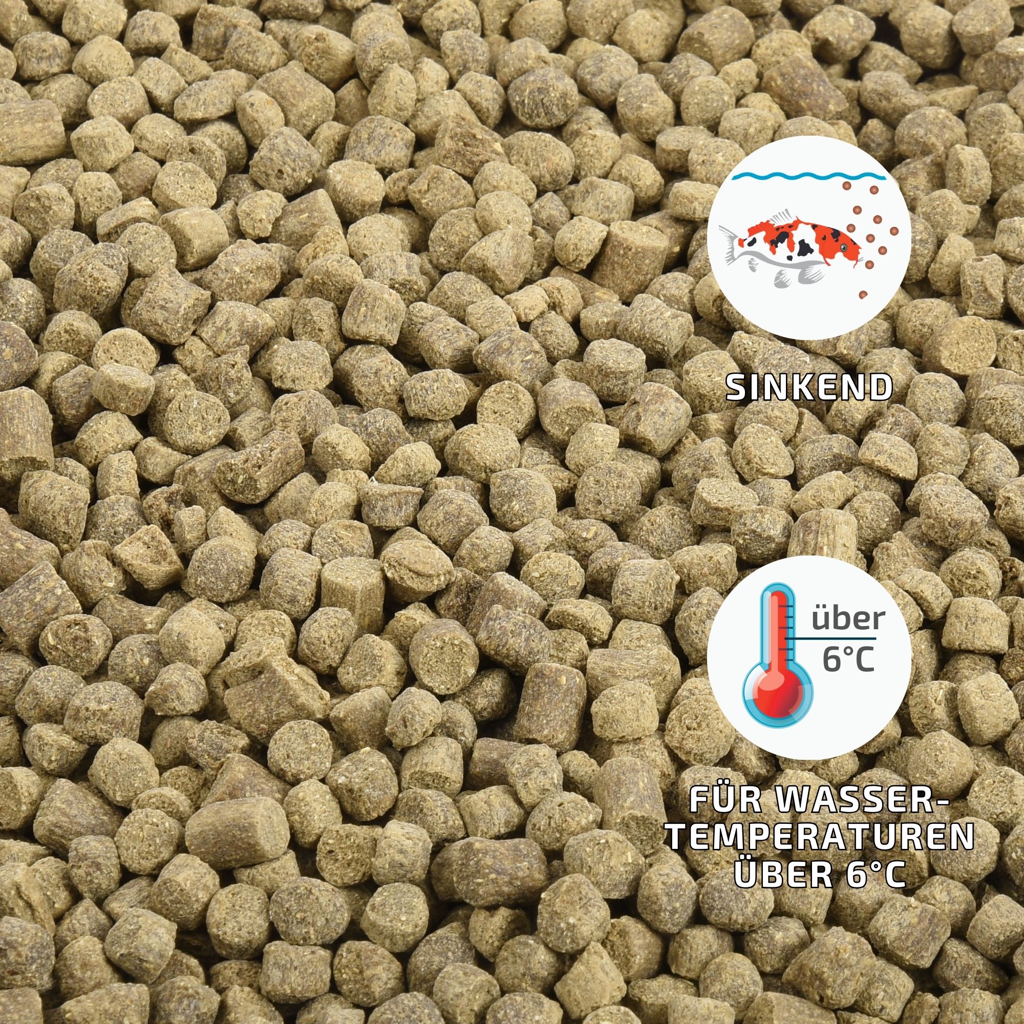 Wenn Sie dieses Futter mit Energie Plus auffetten, dann können Sie es bis zu einer Wassertemperatur von 6°C füttern.