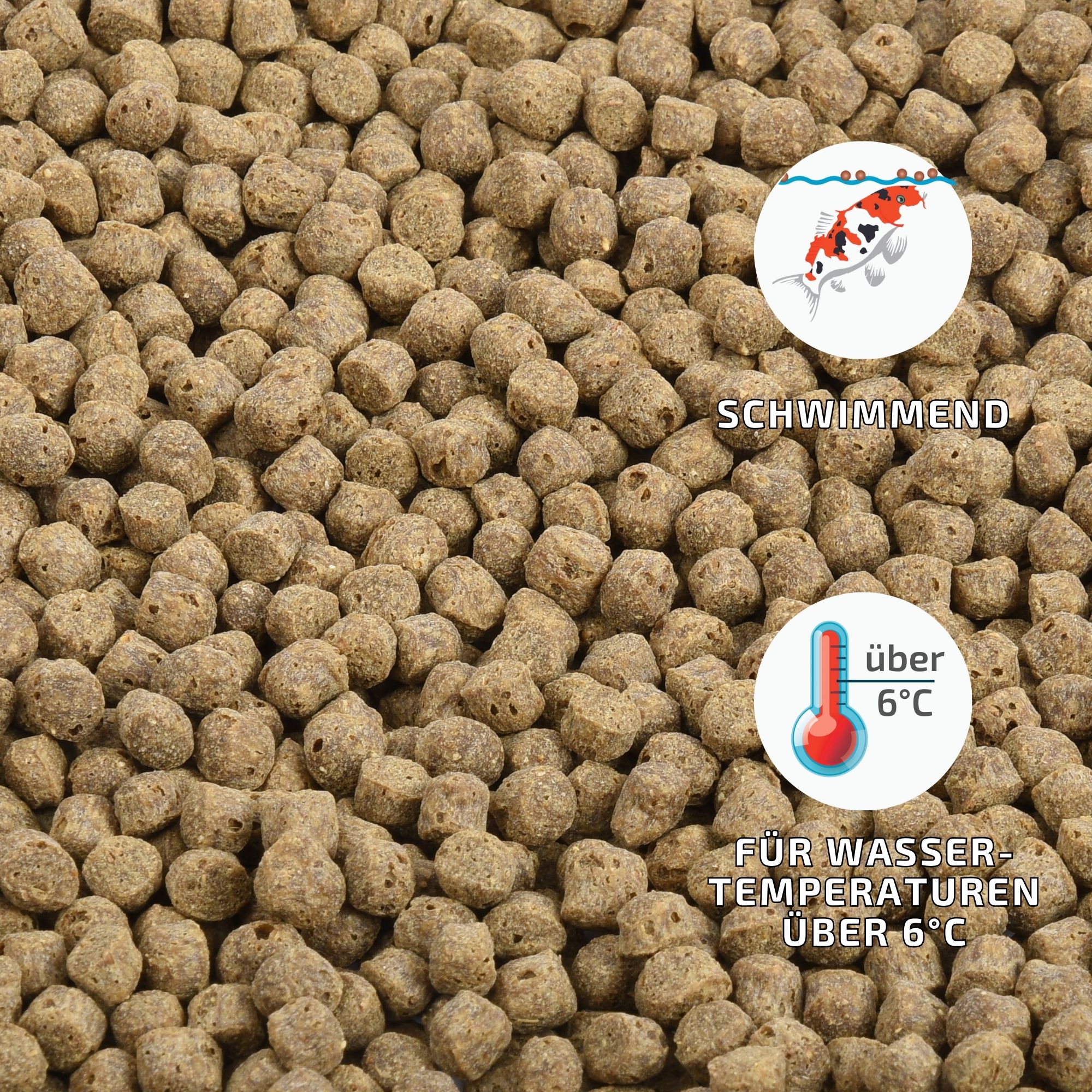 Wenn Sie dieses Futter mit Energie Plus auffetten, dann können Sie es bis zu einer Wassertemperatur von 6°C füttern.
