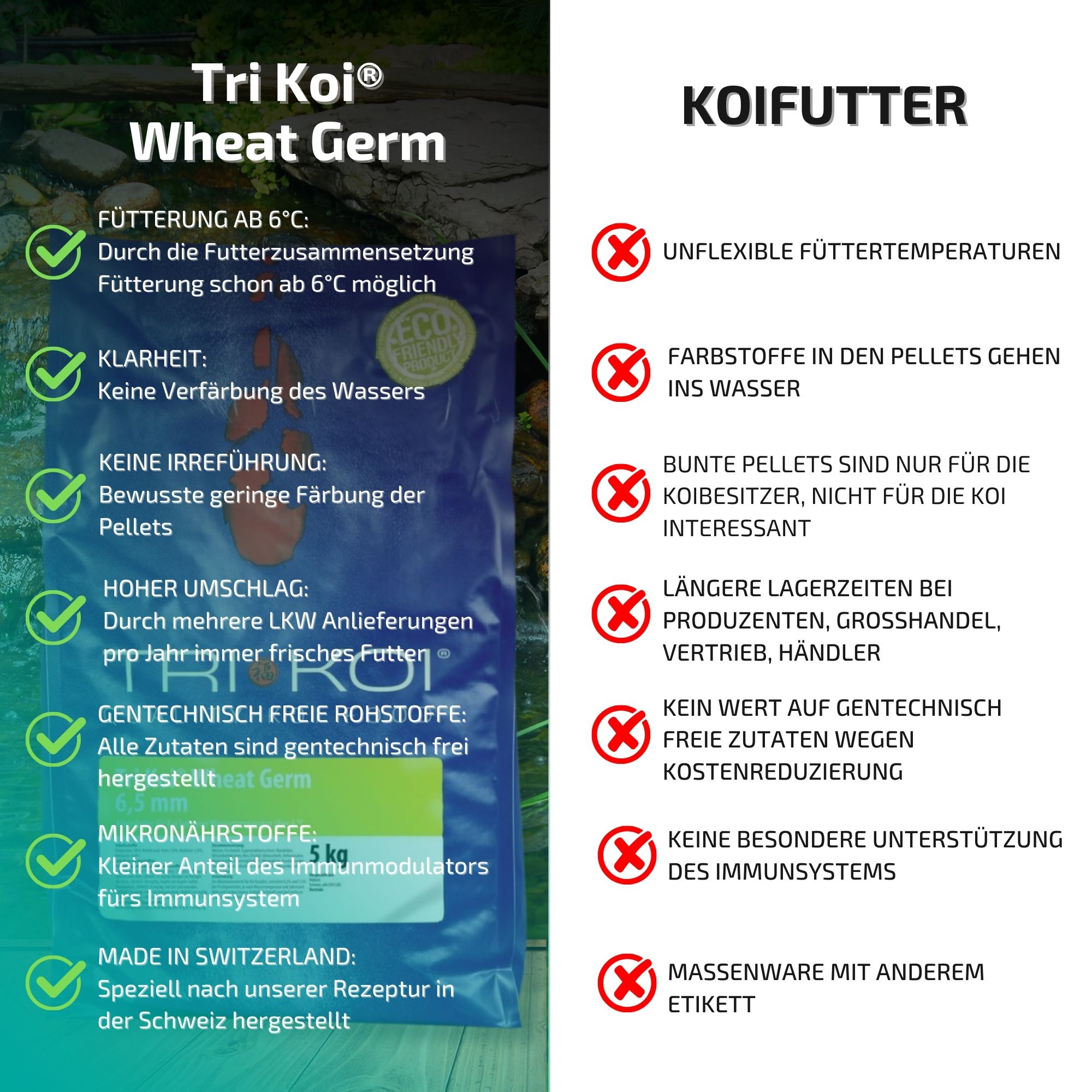 Bedingt durch unseren hohen Verbrauch erhalten Sie unser Tri Koi® Futter Wheat Germ immer absolut frisch.