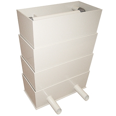 Der Filtra Trickle Tower Medium zersetzt effektiv schädliche, im Teichwasser gelöste Abfälle (Proteine, Ammonium, Nitrit usw.), in harmlose Verbindungen. Das Schmutzwasser wird über ein Sprührohr in die Kammer verteilt, dann fällt das Wasser über große Flächen hinunter.