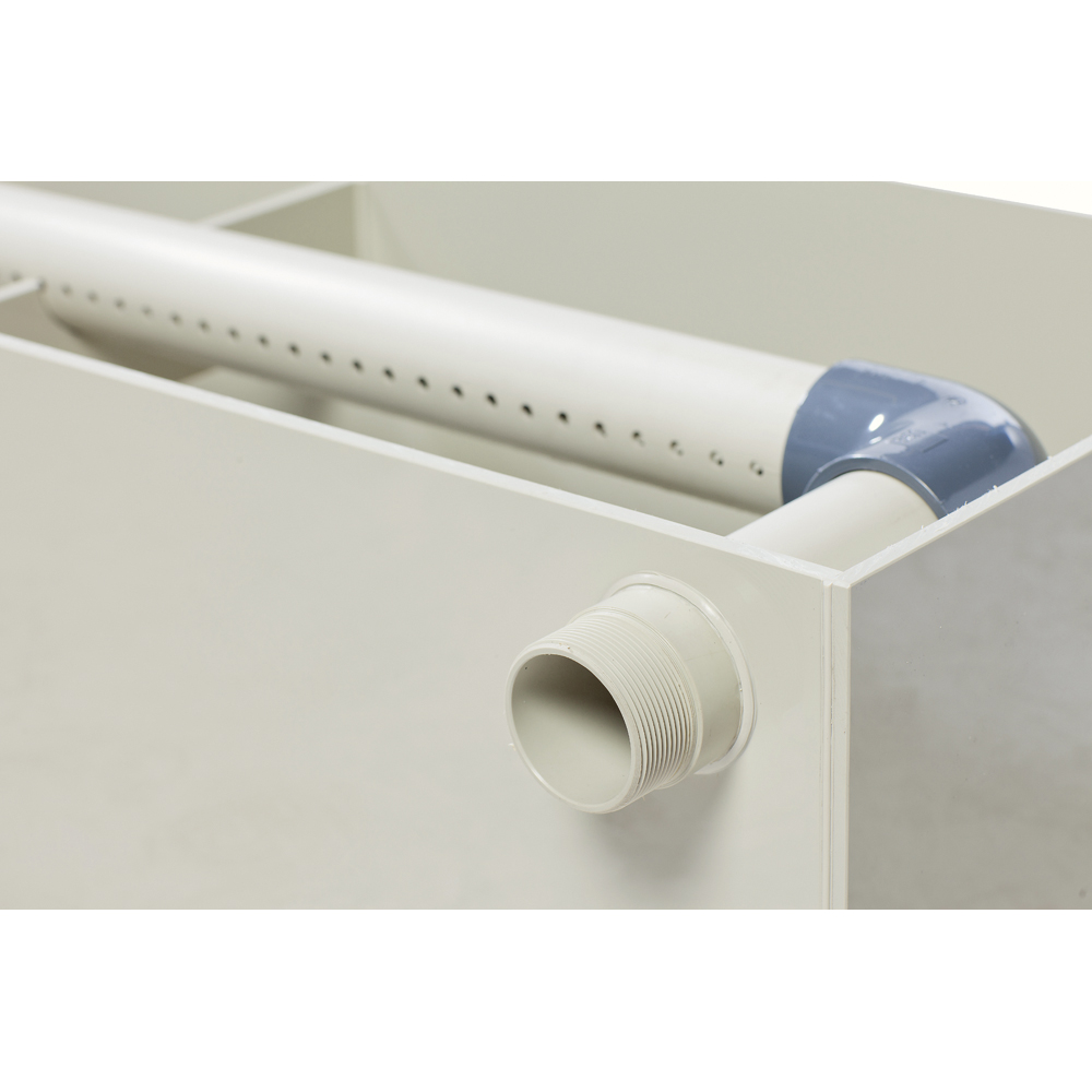 Der Filtra Trickle Tower Medium zersetzt effektiv schädliche, im Teichwasser gelöste Abfälle (Proteine, Ammonium, Nitrit usw.), in harmlose Verbindungen. Das Schmutzwasser wird über ein Sprührohr in die Kammer verteilt, dann fällt das Wasser über große Flächen hinunter.