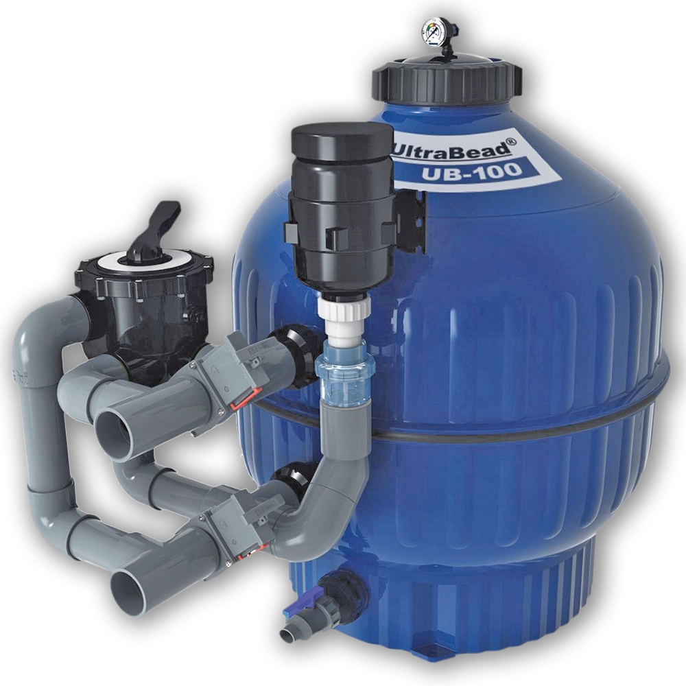 AquaForte stellt den neuen Ultrabead Filter vor! Nach mehr als 17 erfolgreichen Jahren folgt auf Europas beliebtesten Beadfilter nun eine neue Generation. Beadfilter sind geschlossene (Druck-) Filter, die mit ein paar Millionen Plastibeads gefüllt sind. Die Beads sorgen sowohl für die mechanische als auch biologische Filterung. Wenn der Filter länger im Gebrauch ist wird auch der Biofilm um die Beads dicker wodurch auch ganz feine Schmutzpartikel festgehalten werden (bis 10 Mikron!). Sie können für die Auswahl der Pumpe einen Gegendruck von 3 m Wassersäule rechnen. Unsere eigene Verkaufsanlage ist auch mit Beadfiltern bestückt.