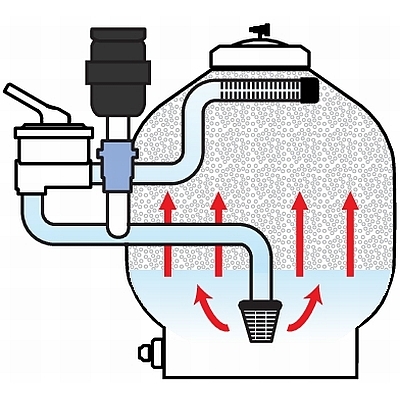 Mit dem Bypass wird der Einsatz von energiesparenden Pumpen möglich. Das 6-Wege-Ventil wird während der Filterung umgangen, so dass das Wasser auf geradem Weg direkt in und aus dem Filter läuft. Während der Spülung werden die Zugschieber geschlossen, dann fließt das Wasser über das 6-Wege-Ventil. Das Bypass-System ist dank seiner Gewindekupplungen sehr einfach an alle Bead Filter zu montieren. Ein- und Auslauf sind beim UB 60 und UB 100 in 63 mm ausgelegt. Beim UB 140 ist er in 75 mm.
