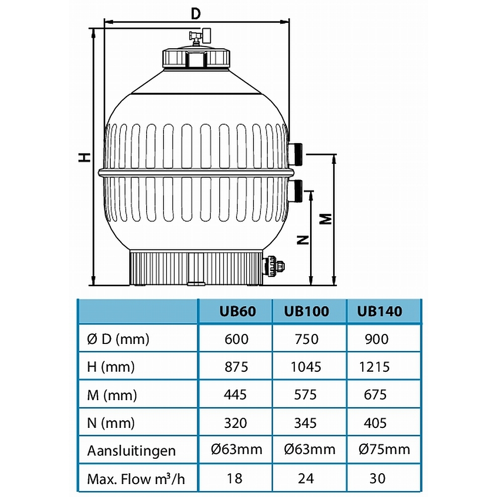 UB 100 750 x 1045 60 m³ ca. 170 l / 100 kg